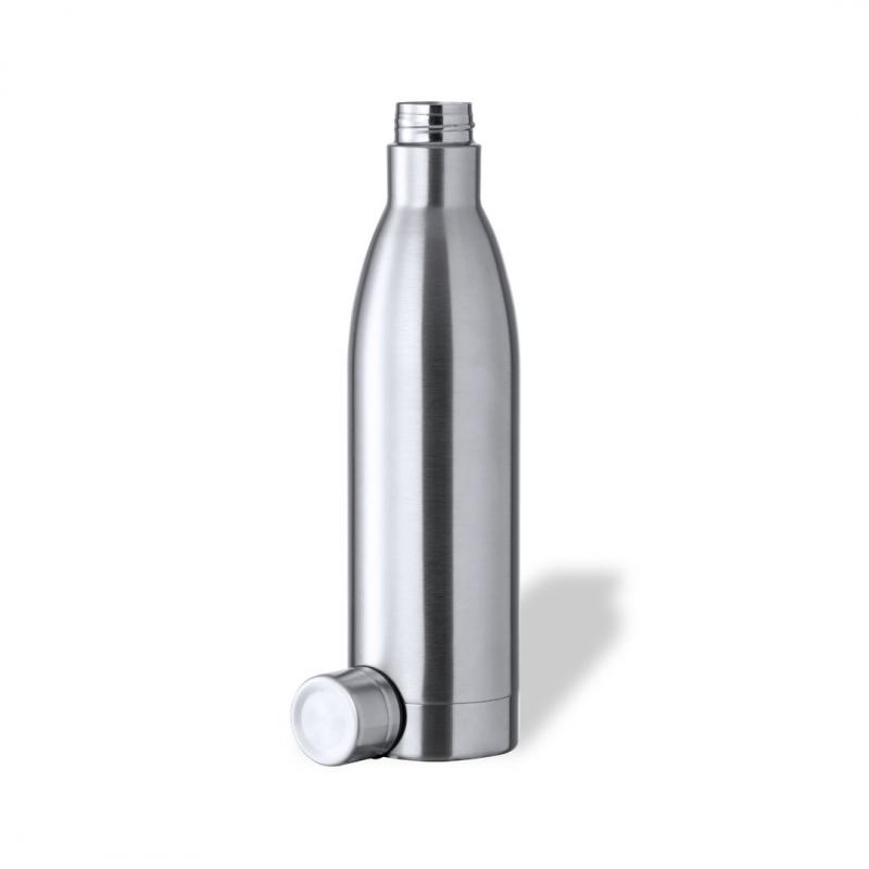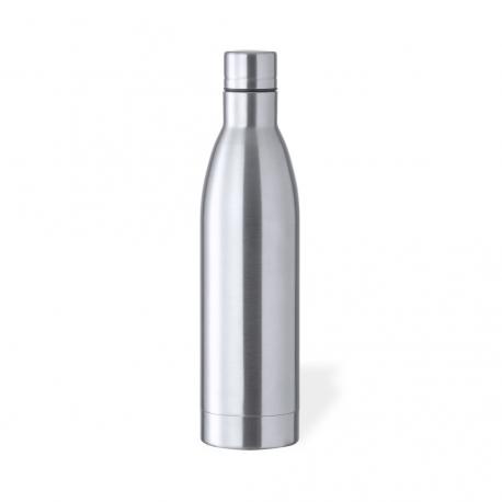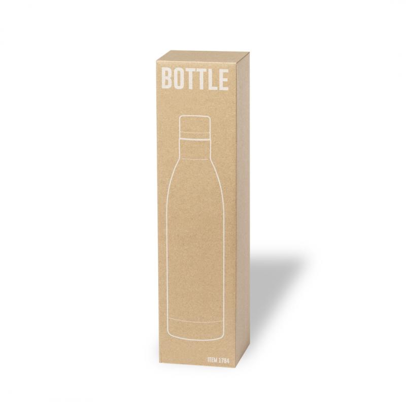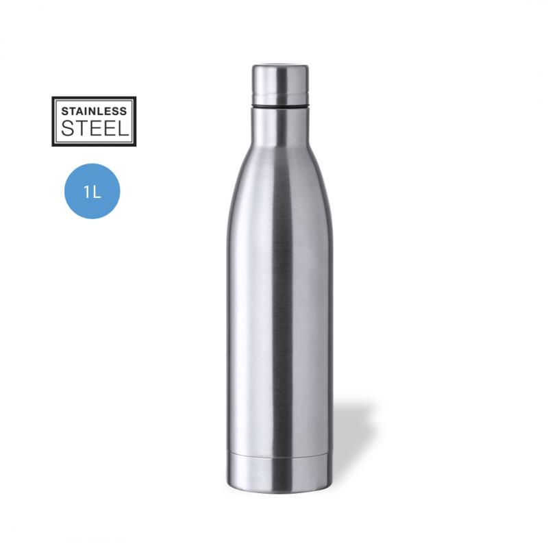Bidón de 1 l de capacidad, fabricado en acero inox de acabado brillo. Con tapón a rosca en acero inox a juego, libre de BPA. Presentado en caja individual de diseño kraft.