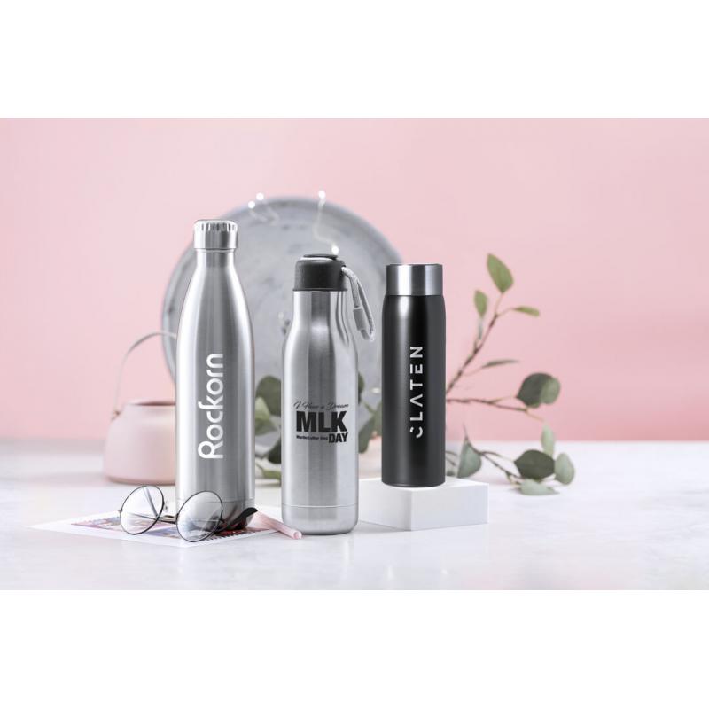 Botella térmica de acero inox de 850ml de capacidad en acabado brillante. Con tapón de seguridad y presentada en atractiva caja de diseño.