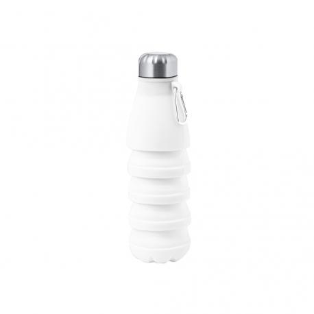Bidón plegable de 550 ml de capacidad. Fabricado en silicona de alta calidad con tapón de acero inoxidable. Con cuerpo flexible de acabado mate, este bidón puede ser plegado para un cómodo y sencillo almacenamiento. Incluye mosquetón para fácil transporte. Libre de BPA. Disponible en variada gama de colores. Presentado en bolsa individual reciclada.Medidas plegado: Ø7,1 cm x 16,9 cm de alto. Medidas desplegado Ø7,1 cm hasta 24,8 cm de alto.