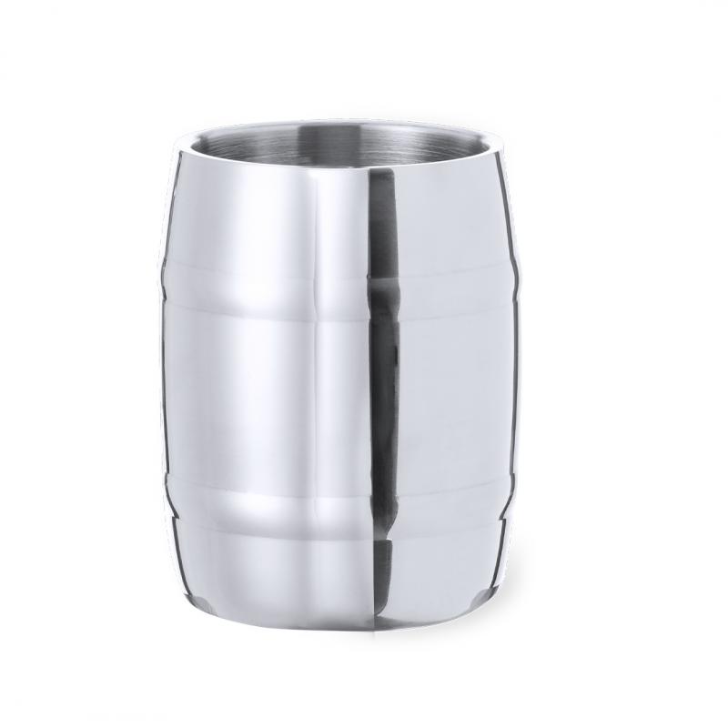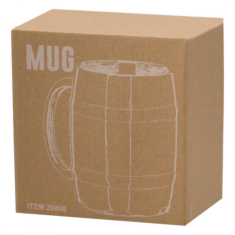 Jarra de acero inox en elegante acabado metálico para los más cerveceros. De 450 ml de capacidad, con cómoda asa y fantástico diseño en forma de barril. Presentada en una caja de diseño kraft.