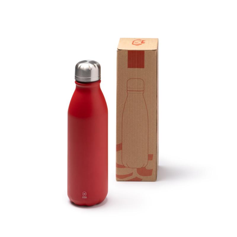 Bidón de aluminio reciclado con pared simple e idónea para tu día a día. Capacidad de 550 ml.