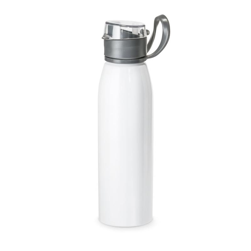 Botella fabricada en aluminio con tapa de AS y asa para facilitar el transporte. Capacidad de hasta 650 mlRecipiente :