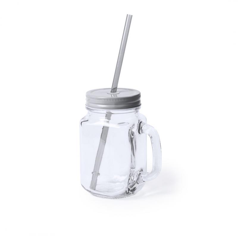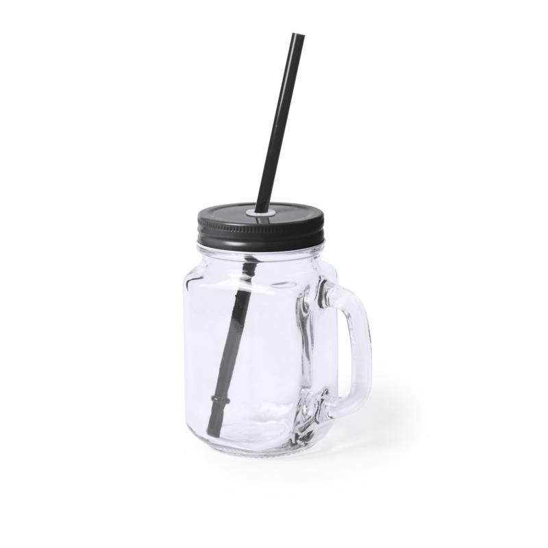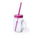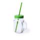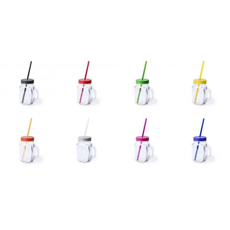 Tarro multiusos de cristal de 500ml de capacidad con tapa y pajita en vivos colores. Con tapa metálica a rosca y presentado en atractiva caja de diseño.