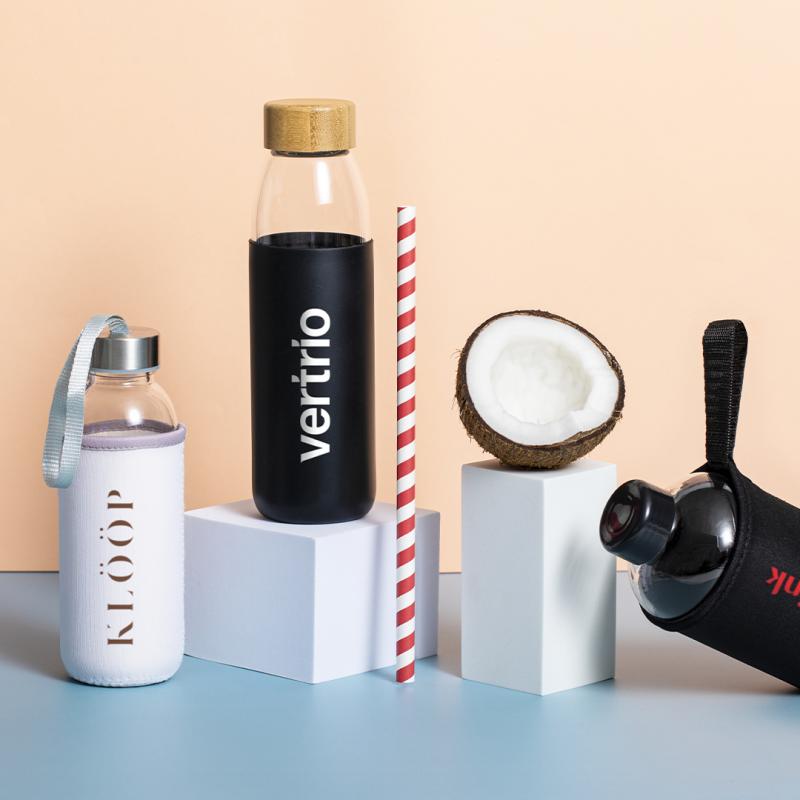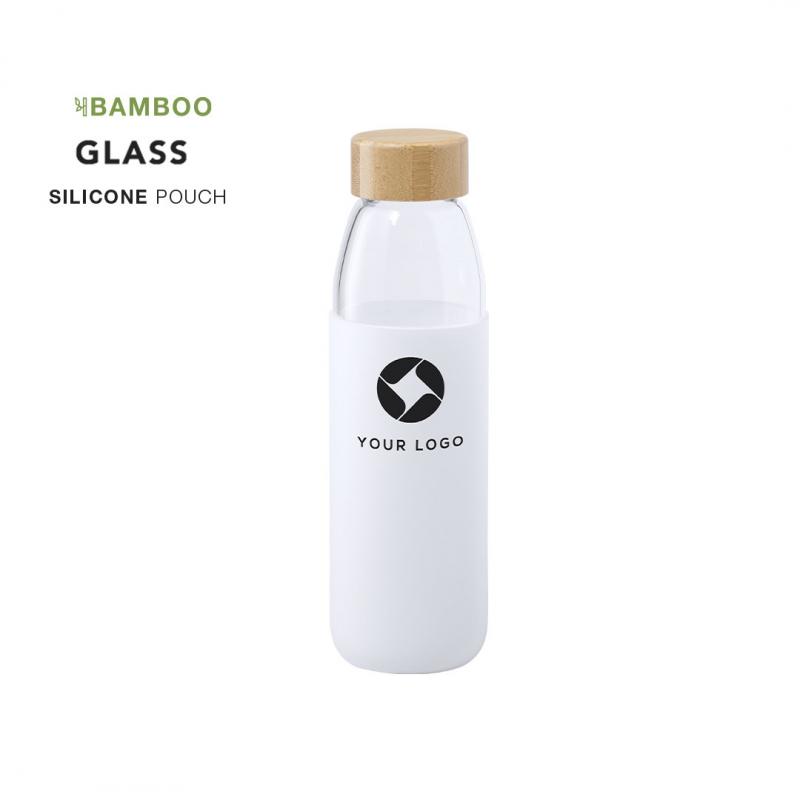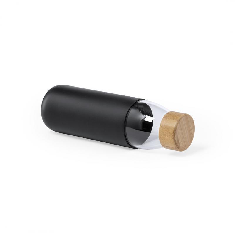 Bidón de línea nature de 540ml de capacidad. Fabricado con cuerpo de cristal y tapón a rosca de bambú. Incluye funda de silicona y viene presentado en caja individual de atractivo diseño.Este artículo sólo puede imprimirse en 1 color (blanco/negro).