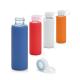 Botella de vidrio de borosilicato con tapa hecha en PP y cierre de rosca. Incluye una funda protectora de silicona. Capacidad de hasta 380ml. Suministrada en caja de cartónRecipiente :