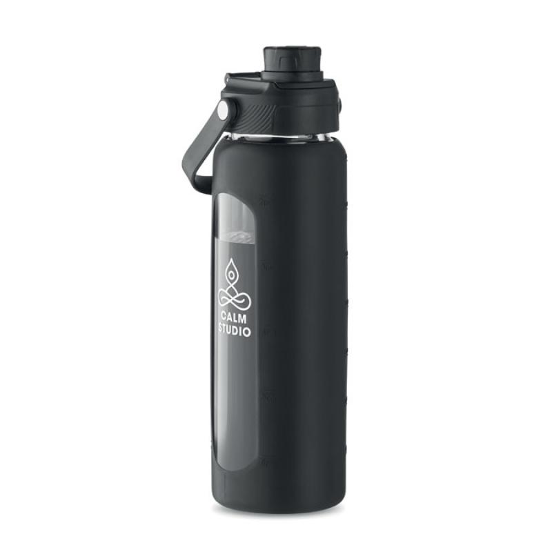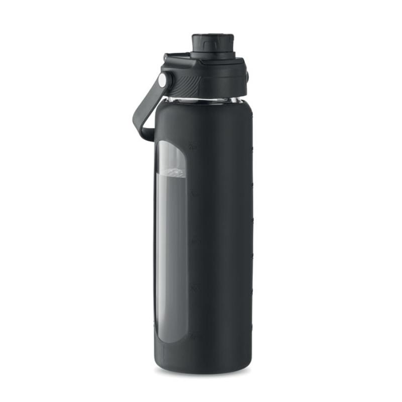 Botella de vidrio de borosilicato con funda transparente de silicona y tapa de PP con asa de transporte. Anti fugas. Capacidad: 750 ml.Recipiente :