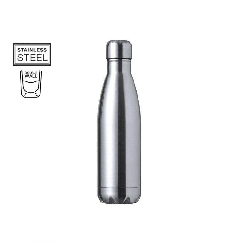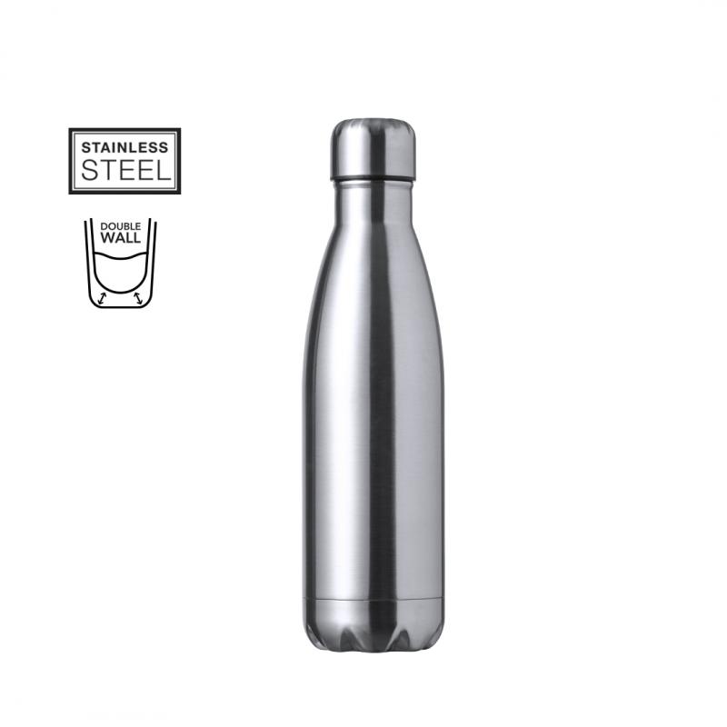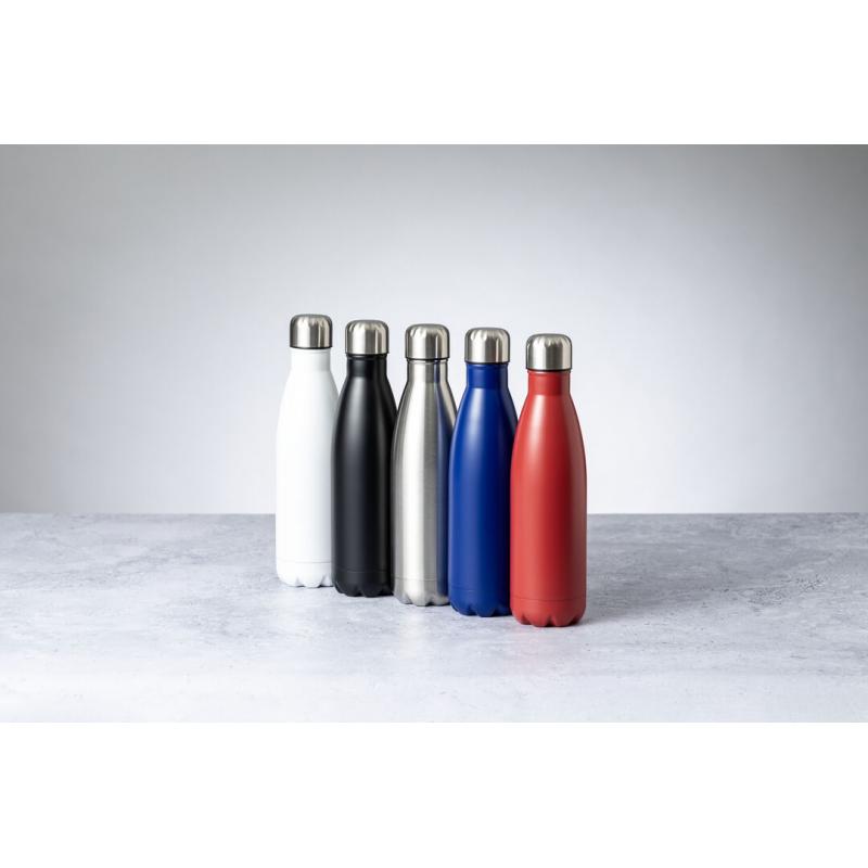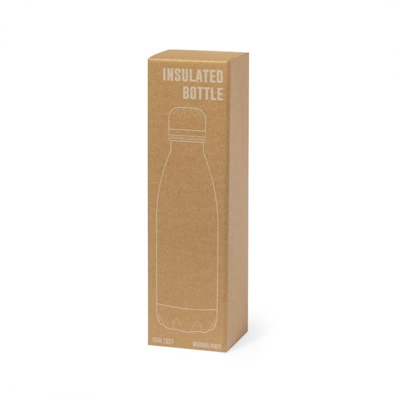 Bidón térmico de 550 ml de capacidad, fabricado en acero inox de doble pared. Con tapón a rosca, libre de BPA y disponible en variada gama de colores satinados. Presentado en caja individual de diseño kraft.