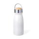 Bidón térmico de doble capa con original estilo y 350 ml de capacidad. Cuerpo en acero inox con tapón de seguridad a rosca en acero inox, con detalle en madera y asa integrada. Disponible en variada gama de colores. Presentado en caja individual de diseño eco en cartón kraft.