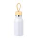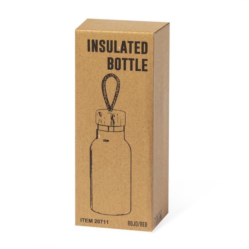 Bidón térmico de 350 ml de capacidad, fabricado en acero inox de doble pared. Incluye original tapón a rosca en bambú y asa para transporte en color natural. Disponible en variada gama de colores y presentado en caja individual de diseño kraft.