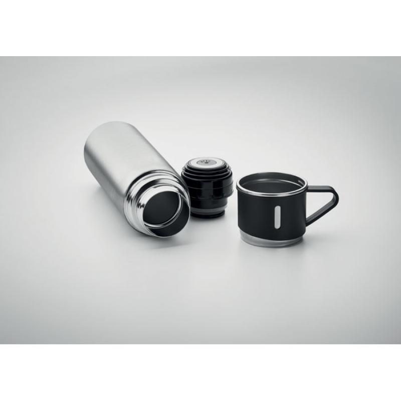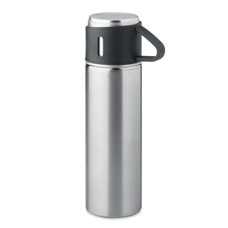 Botella de acero inoxidable de doble pared con tapa hermética. Capacidad: petaca 420 ml, vaso 150 ml.Recipiente :