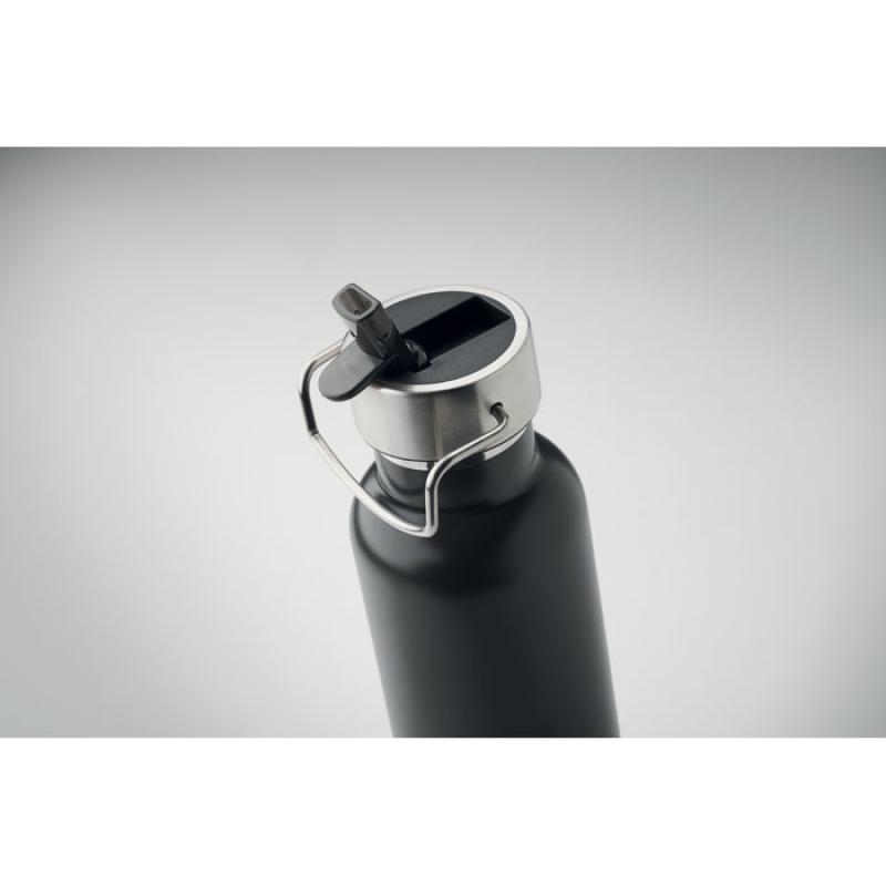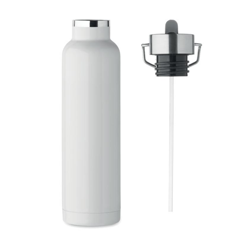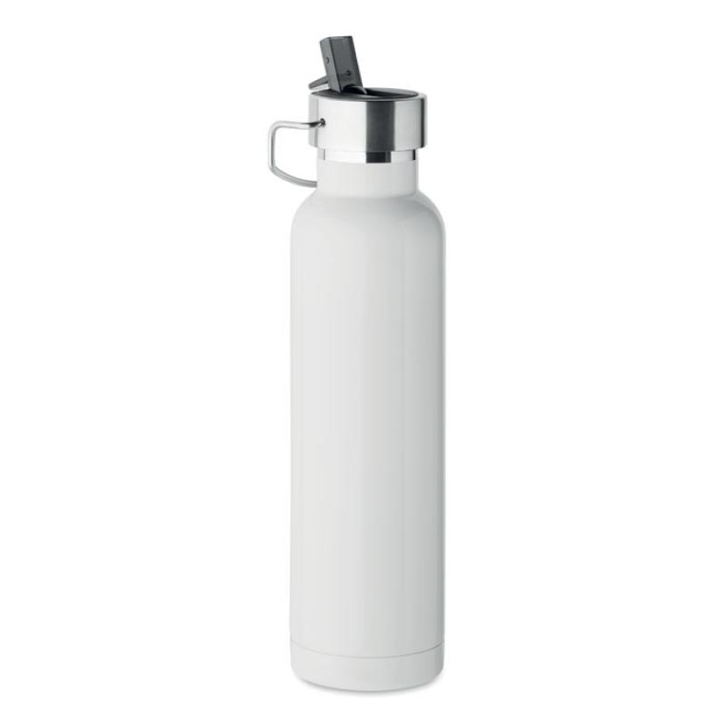 Botella aislante al vacío de doble pared de acero inoxidable reciclado (90% de acero inoxidable reciclado y 10% de acero inoxidable) con pajita incorporada y tapa con asa. Anti fugas. Capacidad: 660 ml.Recipiente :