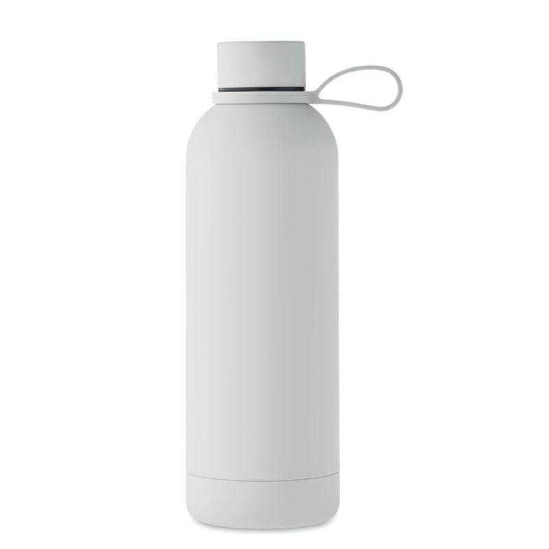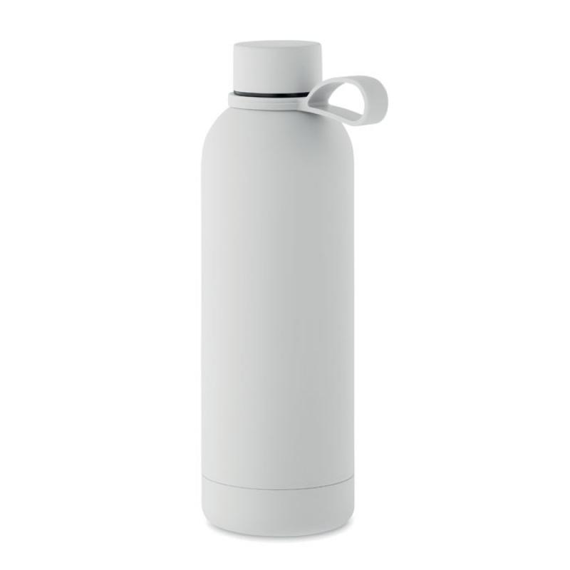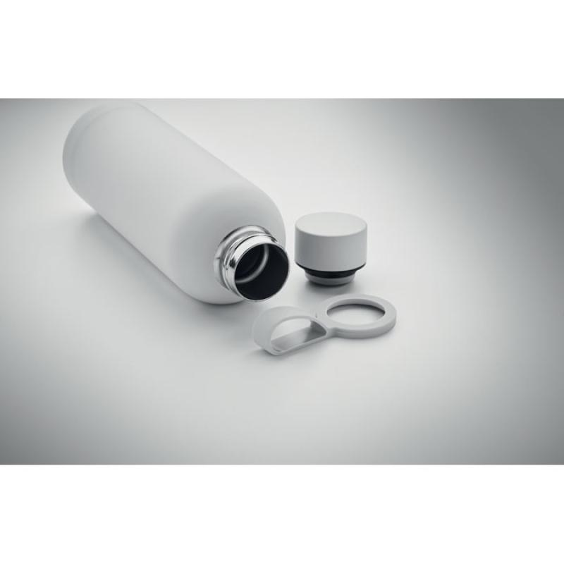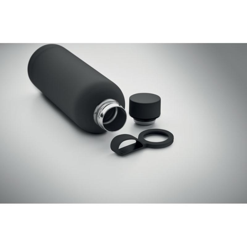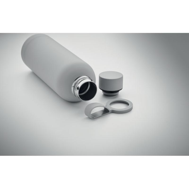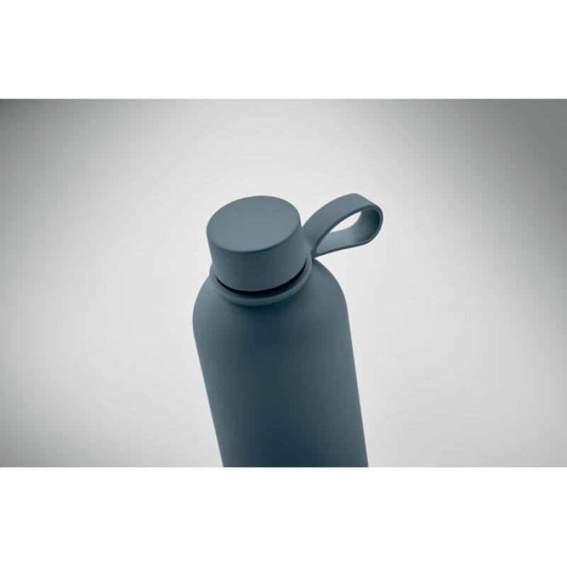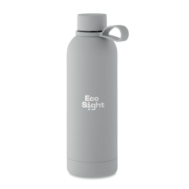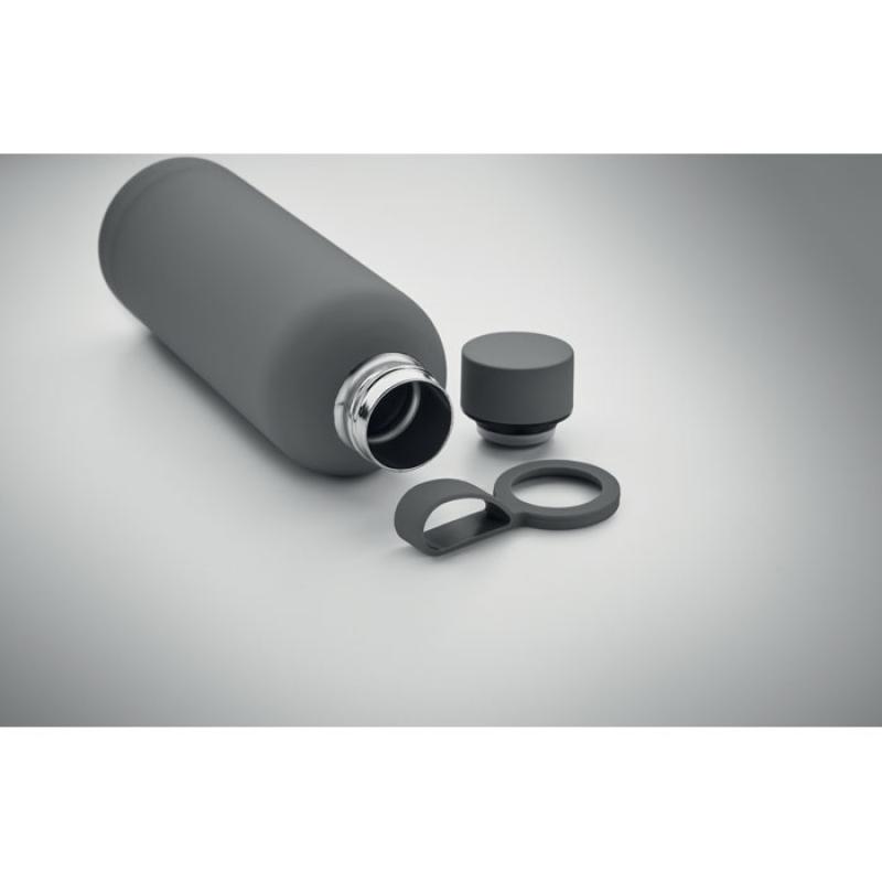 Botella de doble pared aislada al vacío de acero inoxidable reciclado (90% de acero inoxidable reciclado y 10% de acero inoxidable) con acabado de caucho y asa de silicona. Capacidad: 500 ml.Recipiente :