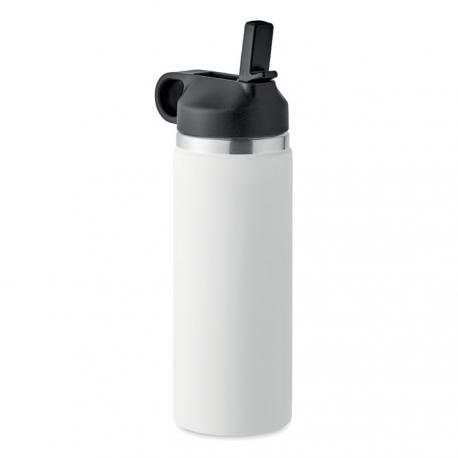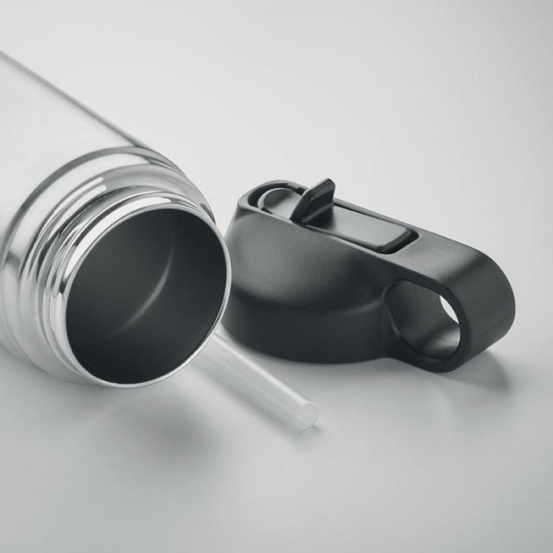 Botella de doble pared aislada de vacío de acero inoxidable reciclado (90% de acero inoxidable reciclado y 10% de acero inoxidable) con tapa con asa de PP de transporte y pajita integrada. Anti fugas. Capacidad: 500 ml.Recipiente :