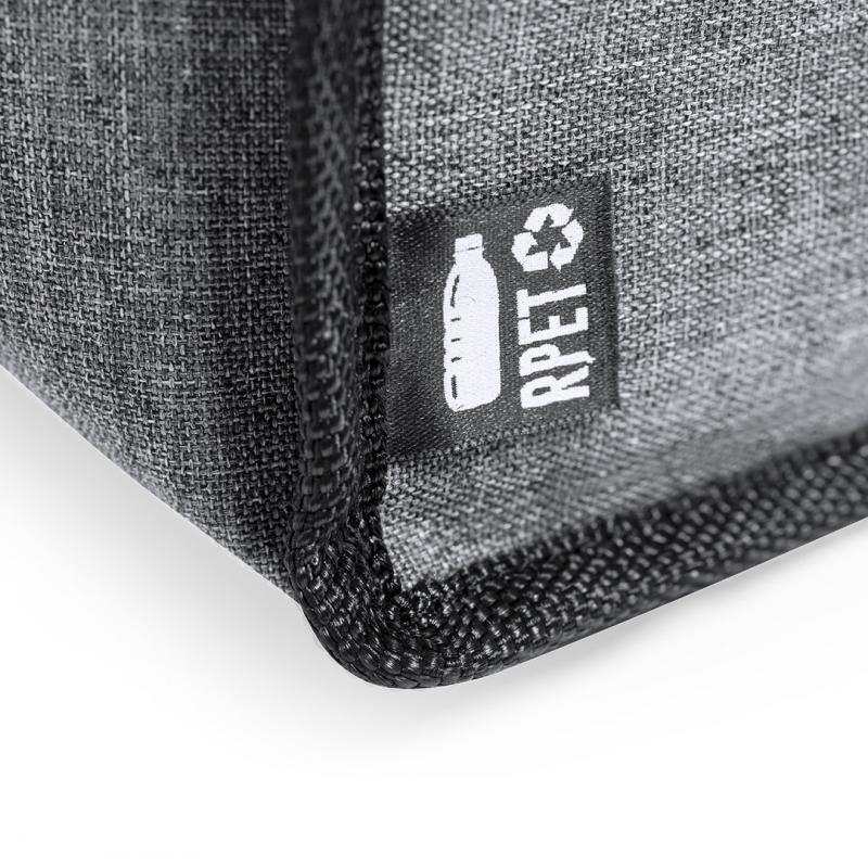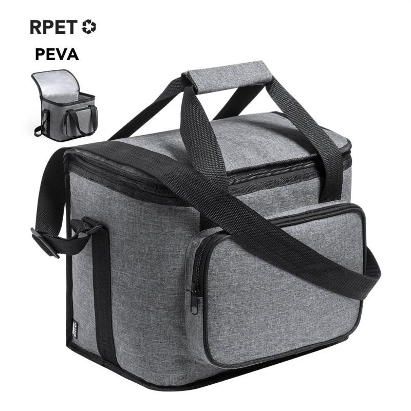 Nevera de línea nature y en resistente 600D RPET efecto melange, elaborado a partir de plástico reciclado para así fomentar la reutilización de residuos plásticos y contribuir a la sostenibilidad del planeta. Detalles en negro y base reforzada. Compartimento principal con cierre de cremallera e interior en PEVA. Incluye bolsillo exterior de cremallera, asas reforzadas con velcro y cinta bandolera ajustable, con distintivo RPET en etiqueta exterior.