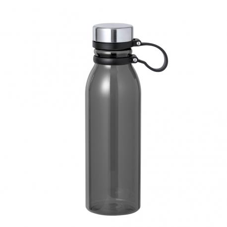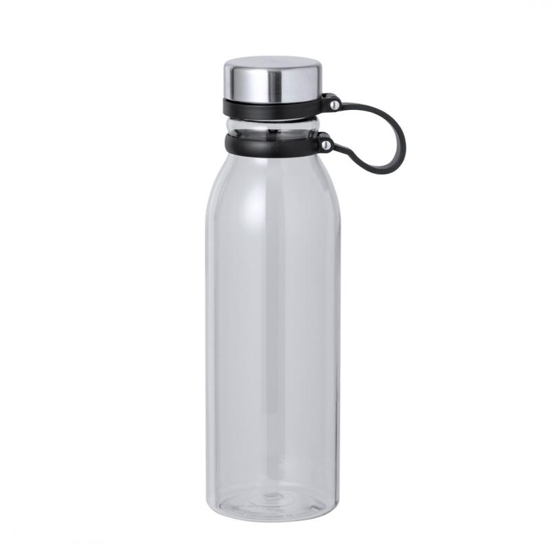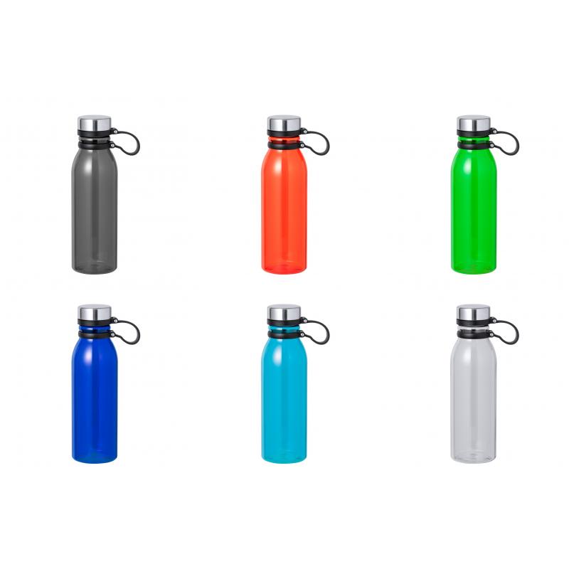 Bidón en RPET de 830 ml de capacidad. Tapón de seguridad de rosca en acero inox y original cinta de silicona para un fácil transporte. Disponible en variada gama de colores translúcidos. Libre de BPA y presentado en atractiva caja de diseño kraft. El material RPET se elabora a partir de plástico reciclado, para así fomentar la reutilización de residuos plásticos y ayudar a la sostenibilidad del planeta.