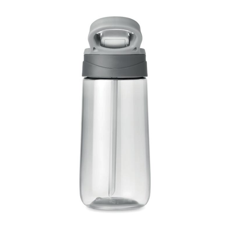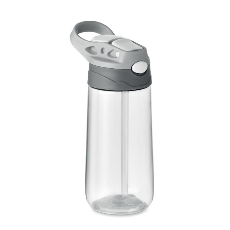 Botella de Tritán™ libre de BPA con boquilla de silicona en la tapa. Capacidad: 450 ml. No apto para bebidas gaseosas. Anti fugas.