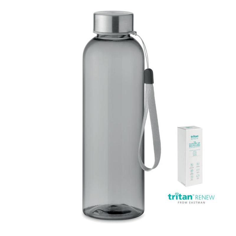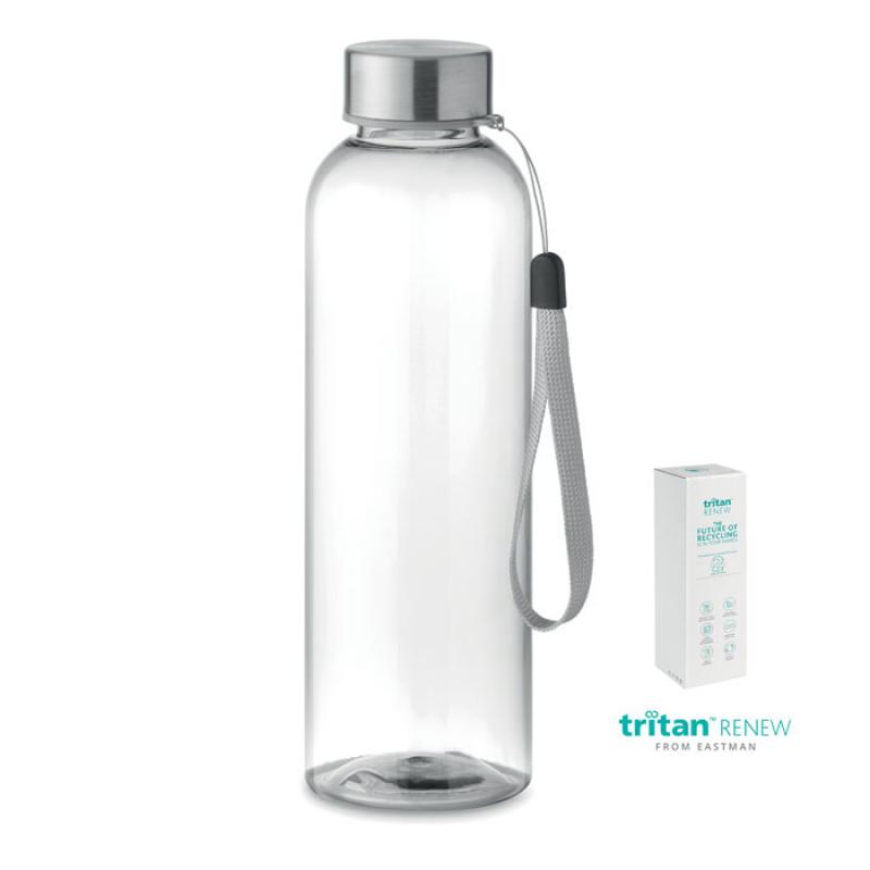 Botella en Tritan Renew™ libre de BPA con tapa con asa de acero inoxidable. Anti fugas. Capacidad 500 ml. Este producto se obtiene a partir de un 50% de residuos plásticos usando Certificación de Sostenibilidad en Materias Primas Renovables (ISCCRecipiente :