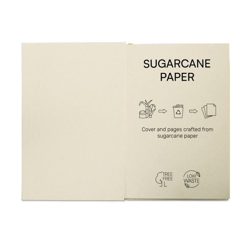 Libreta A5 de tapa dura fabricada en papel de caña de azúcar (80% pulpa de caña de azúcar).