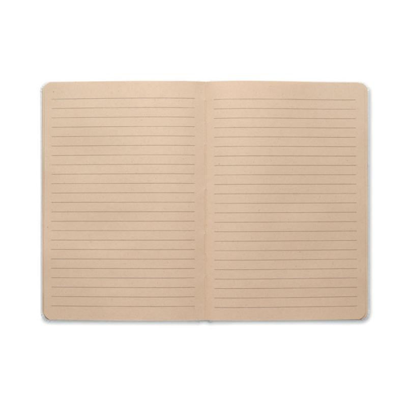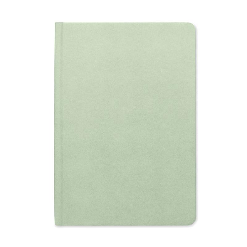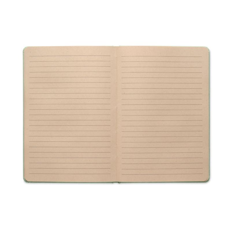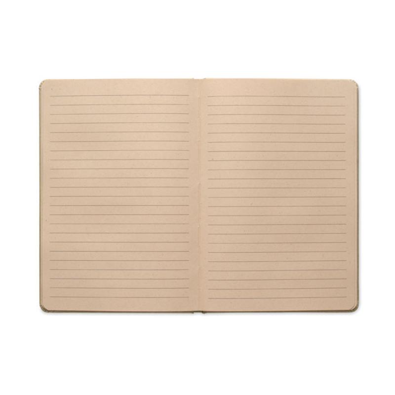 Libreta A5 con tapa dura y 160 páginas de papel rayado (80 hojas) en PLA de caña de azúcar (65% fibra de caña/35% papel).Recipiente :