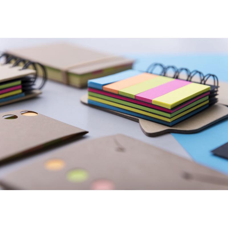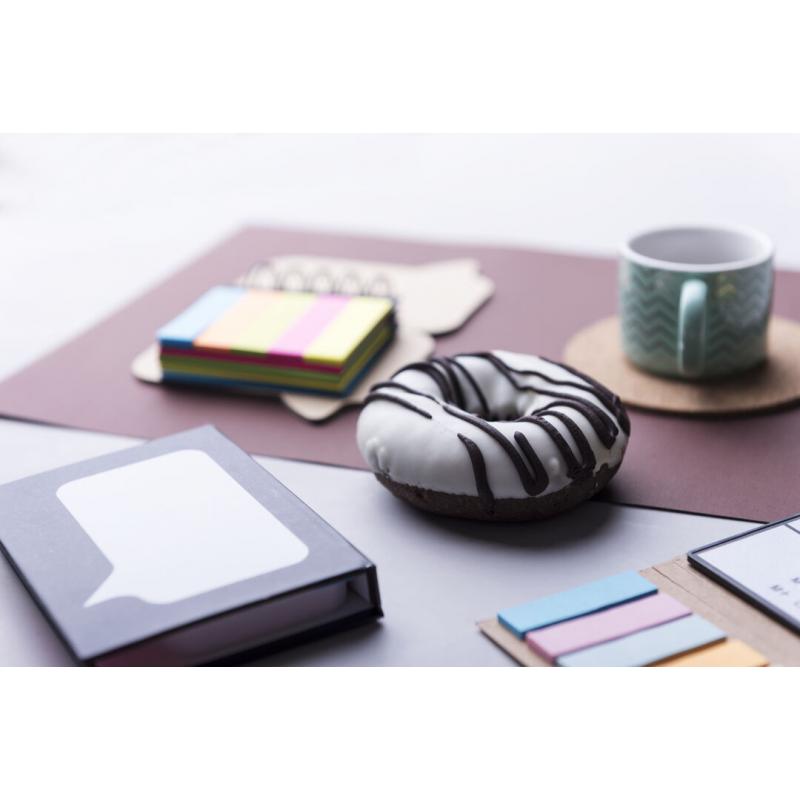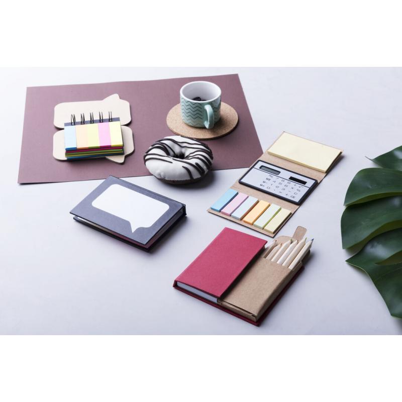 Original bloc de notas adhesivas de anillas con diseño de bocadillo y tapas de suave tacto acabadas en resistente cartón reciclado rígido. Con 100 notas adhesivas grandes y 125 mini notas adhesivas.