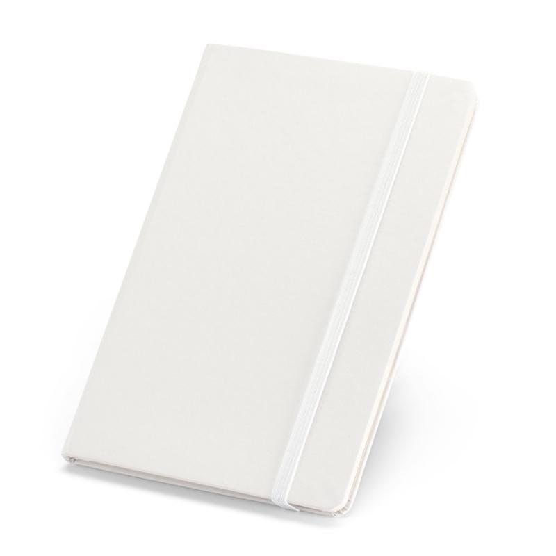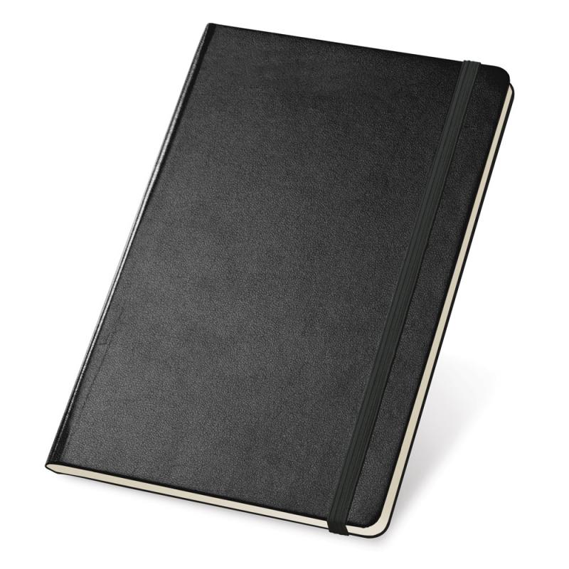 Bloc de notas A5 con 160 páginas en color marfil y tapa dura. Incluye bolsillo interior, cinta separadora y cierre elástico.137 x 210 mm