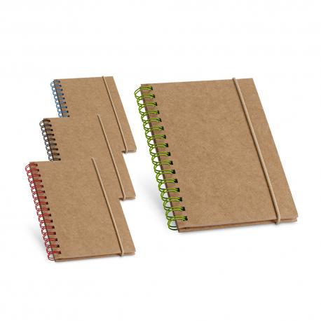 Bloc de notas de bolsillo con espiral, 120 páginas rayadas de papel reciclado y cierre con cinta elástica.100 x 140 mm