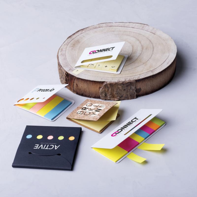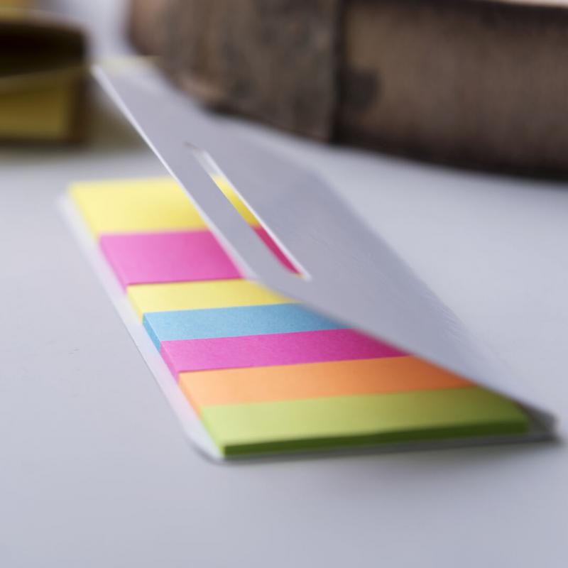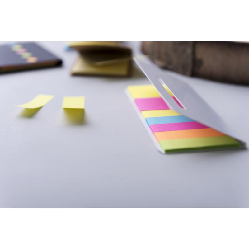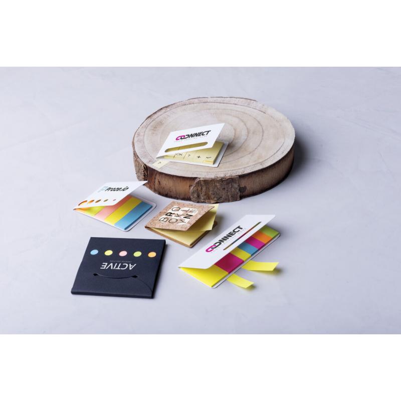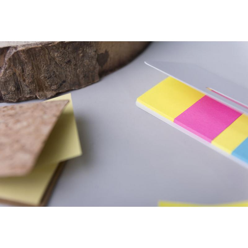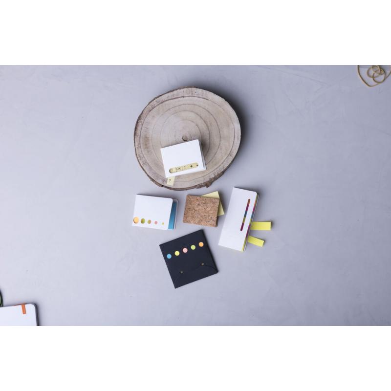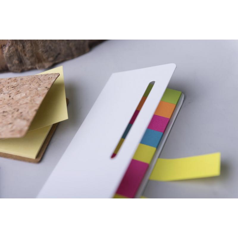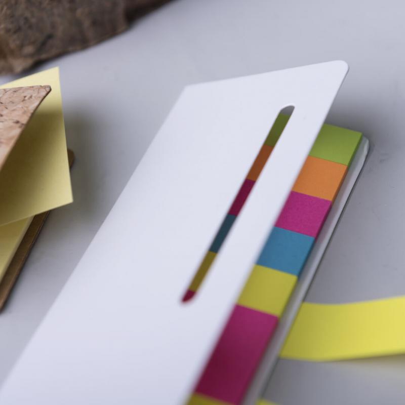 Bloc de notas adhesivas con tapa troquelada de suave tacto acabada en cartón de elegante color blanco. Con 20 notas adhesivas grandes y 100 mini notas adhesivas.