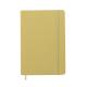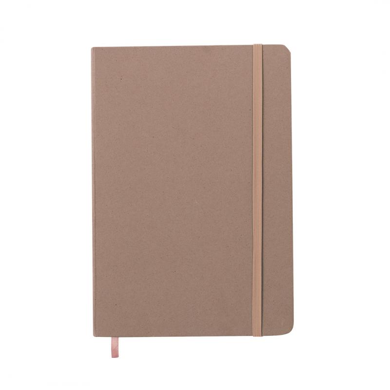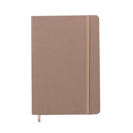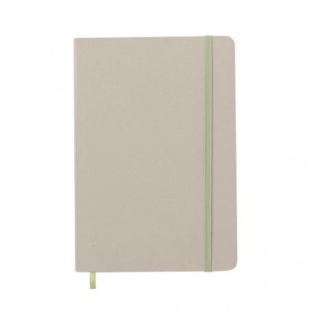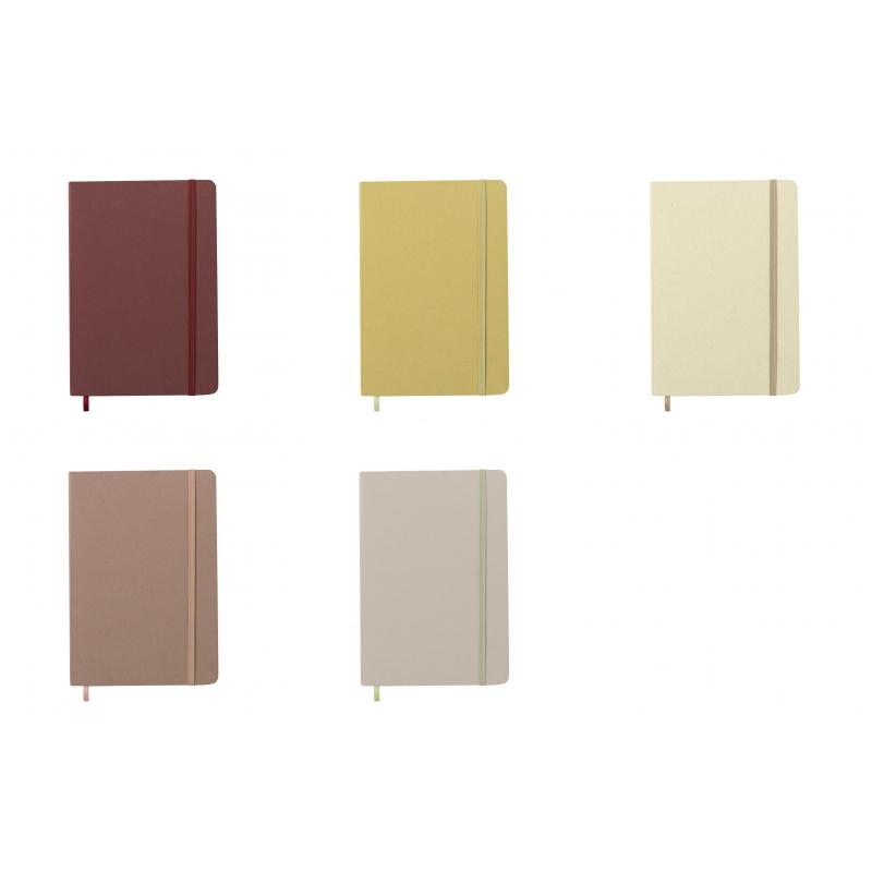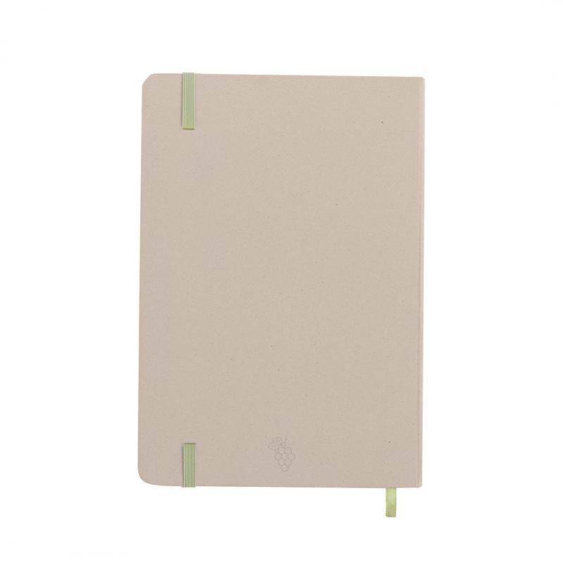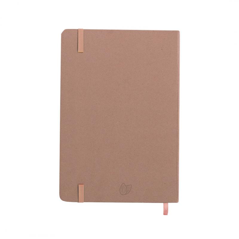 Bloc de notas A5 con tapas duras elaborado a partir de frutas. Interior con 80 hojas de disposición a una raya, con marcapáginas y banda elástica a juego. Disponible en variados colores de acabado kraft. Incluye logotipo Papel de Fruta en contraportada. Presentado en una bolsa individual reciclada.Mediante la mezcla de residuos y desechos procedentes de la industria agroalimentaria, mezclados con otros materiales reciclados, se obtiene un papel 100% sostenible: el papel de frutas. Fomentando su uso se contribuye a la reutilización de materiales, y a un mayor compromiso medioambiental.