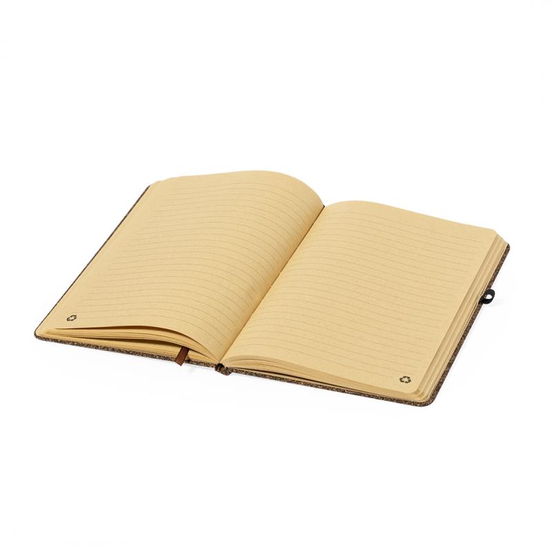 Bloc de notas fabricada en combinación de fibra de café y corcho. Con tapas rígidas y 80 hojas kraft recicladas con disposición a una raya. Incluye marcapáginas a juego y soporte elástico para bolígrafo. Con distintivo fibra de café en contraportada.La fibra de café es una solución circular que se obtiene de la utilización de los residuos producidos en la obtención del café. Una alternativa sostenible que favorece la reducción del uso de plásticos, ahorrando energía en su proceso de fabricación y contribuyendo al cuidado del medio ambiente.