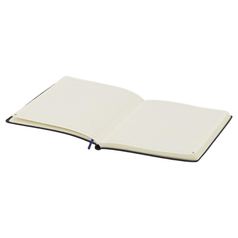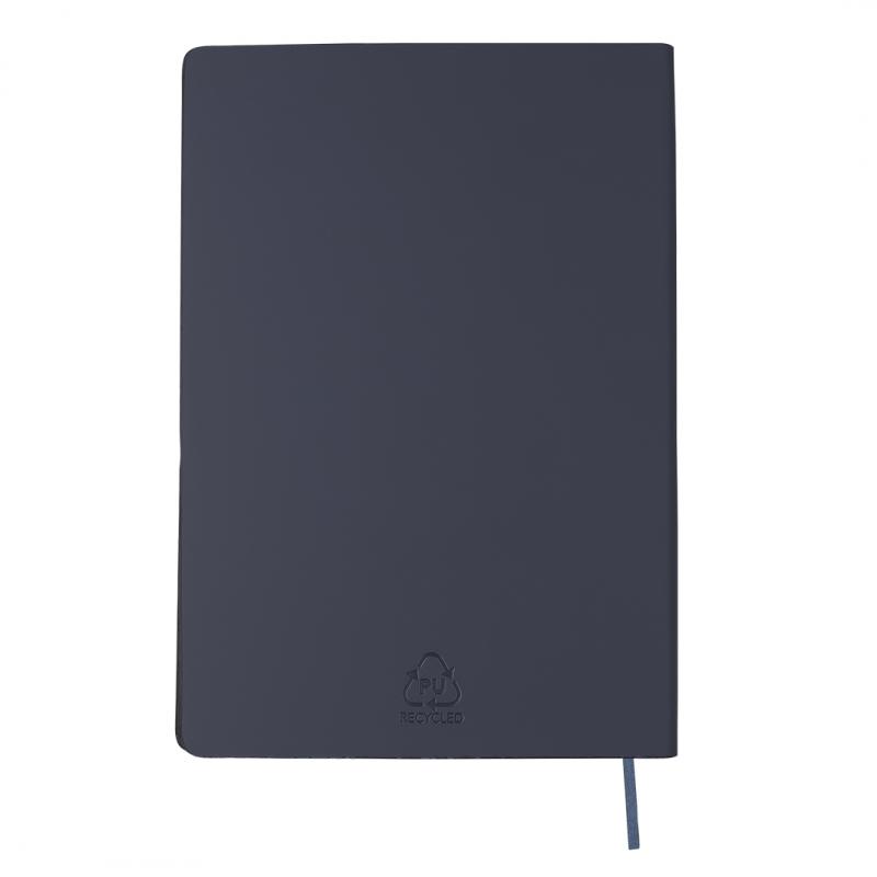 Bloc de notas con tapas blandas fabricadas en PU reciclada. Interior con 80 hojas color crema de disposición a una raya. Incluye marcapáginas a juego. Con distintivo PU Reciclada. La PU reciclada destaca por su resistencia y elasticidad. Este material reciclado y reciclable es una opción sostenible que rescata las fibras desechadas en los procesos de fabricación, minimizando así el desperdicio de material y contribuyendo a su vez a reducir el impacto ambiental, manteniendo a la vez sus propiedades originales.