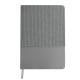 Bloc de notas A5 en suave pana de poliéster y PU Reciclado. Incluye con 80 hojas en color crema, de disposición a una raya y con marcapáginas a juego. Logotipo PU Reciclada en contraportada. La PU Reciclada destaca por su resistencia y elasticidad. Este material reciclado y reciclable es una opción sostenible que rescata las fibras desechadas en los procesos de fabricación, minimizando así el desperdicio de material y contribuyendo a su vez a reducir el impacto ambiental, manteniendo a la vez sus propiedades originales.