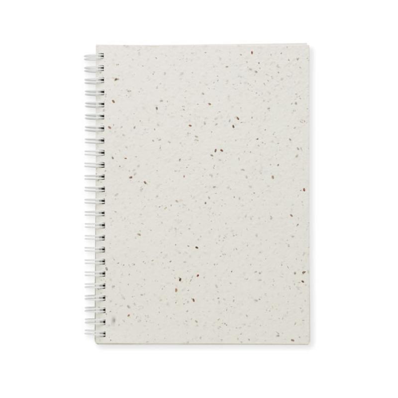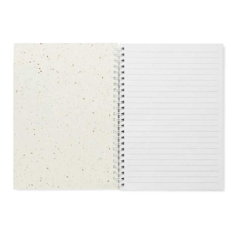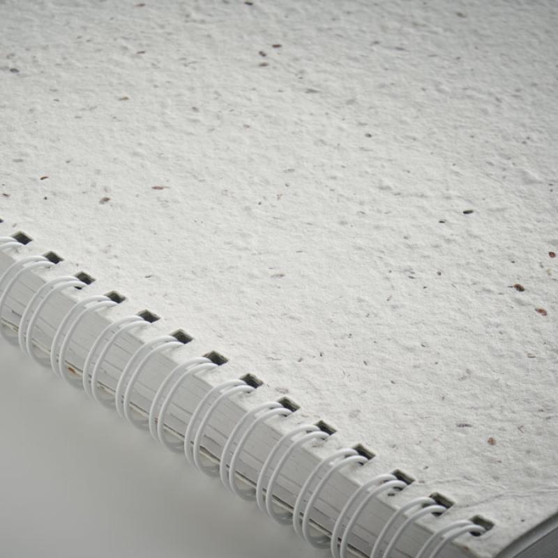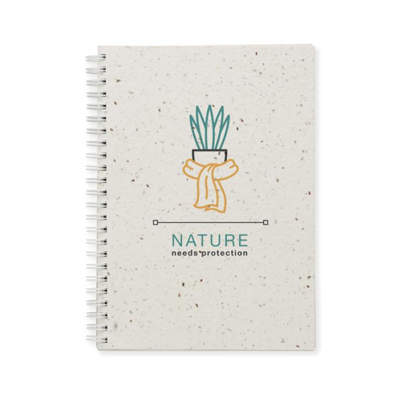 Libreta A5 con tapa de papel de semillas. Doble cubierta. 200 páginas rayadas recicladas (100 hojas).Recipiente :