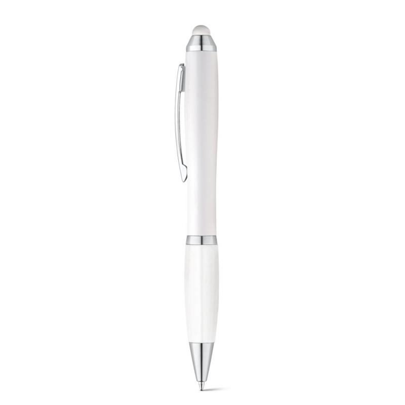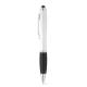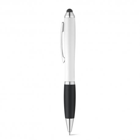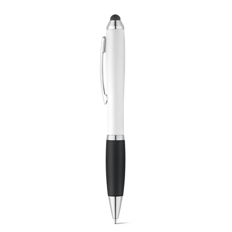 Bolígrafo con clip metálico, mecanismo giratorio y antideslizante. Es adecuado para su uso en dispositivos móviles o tablets debido a su puntero táctil. Disponible en varios colores. Escritura de color azulRecipiente :