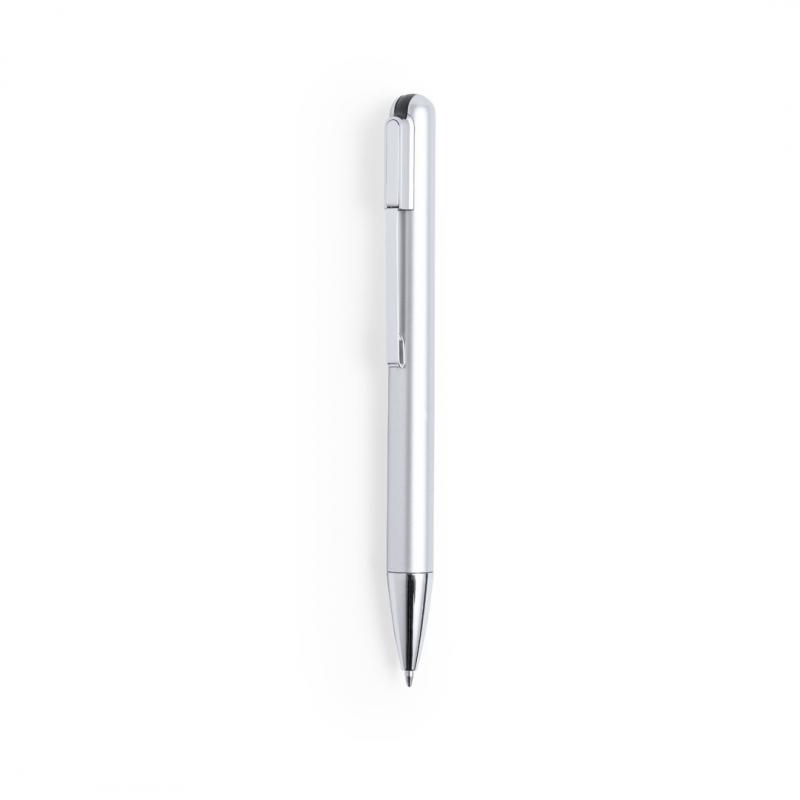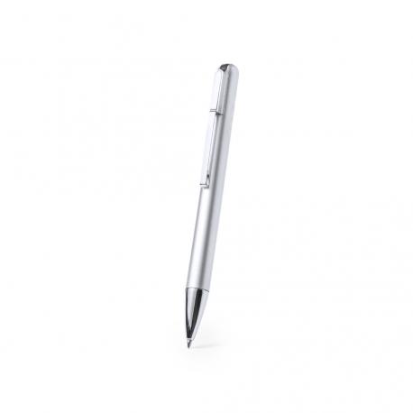 Bolígrafo USB fabricado en resistente ABS de acabado metalizado brillante. Con memoria USB de 16GB de capacidad integrada en la parte superior y clip metálico. De mecanismo giratorio, con cartucho jumbo y en tinta azul. Presentado en caja individual negra.