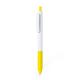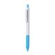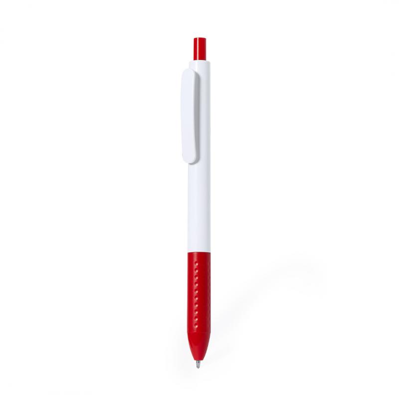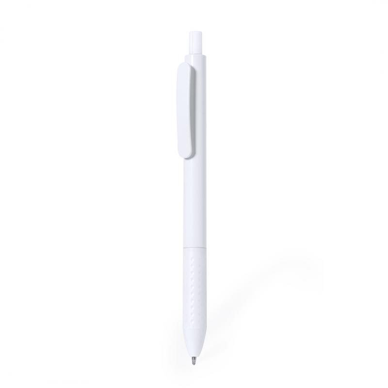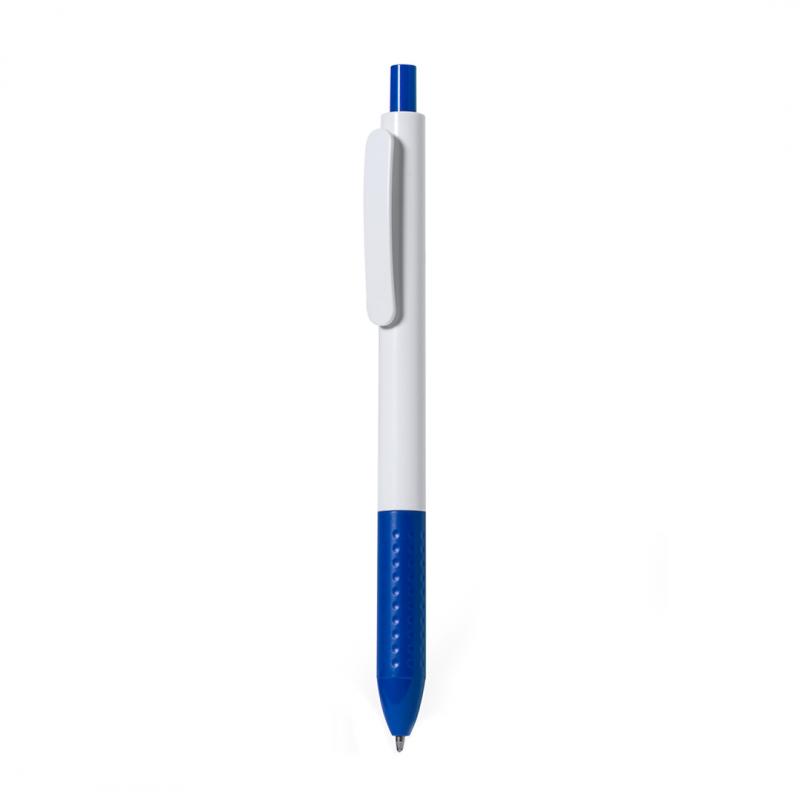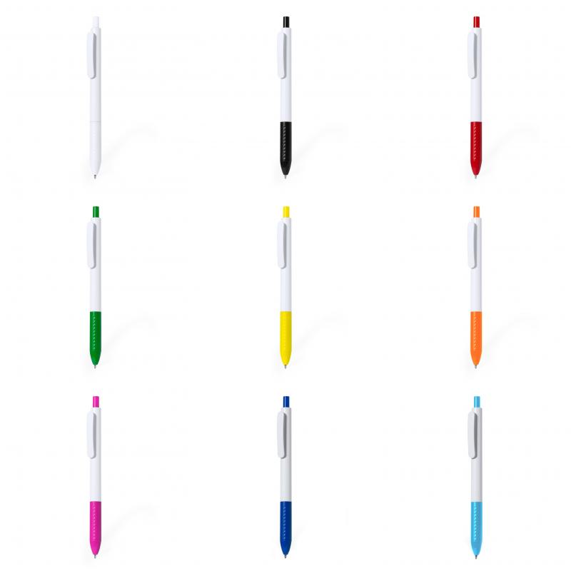 Bolígrafo de mecanismo pulsador en resistente ABS. Fabricado en elegante combinación de caña y clip de tono blanco. Con pulsador y empuñadura disponibles en una vibrante variedad de colores. En tinta azul.
