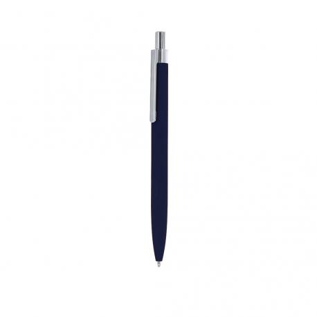 Bolígrafo de mecanismo pulsador fabricado en aluminio reciclado. Pulsador y clip metálico en acabado cromado. Cuerpo acabado goma, especialmente diseñado para marcaje en láser. Distintivo aluminio reciclado en la parte superior del bolígrafo. De cartucho jumbo y en tinta azul. El aluminio reciclado es un material con posibilidades de reciclaje casi infinitas, sin perder sus propiedades originales y consumiendo menos energía en este proceso.Certificación GRS (Global Recycled Standard / Estándar de Reciclaje Global), que garantiza el origen reciclado del material usado para fabricar el producto.
