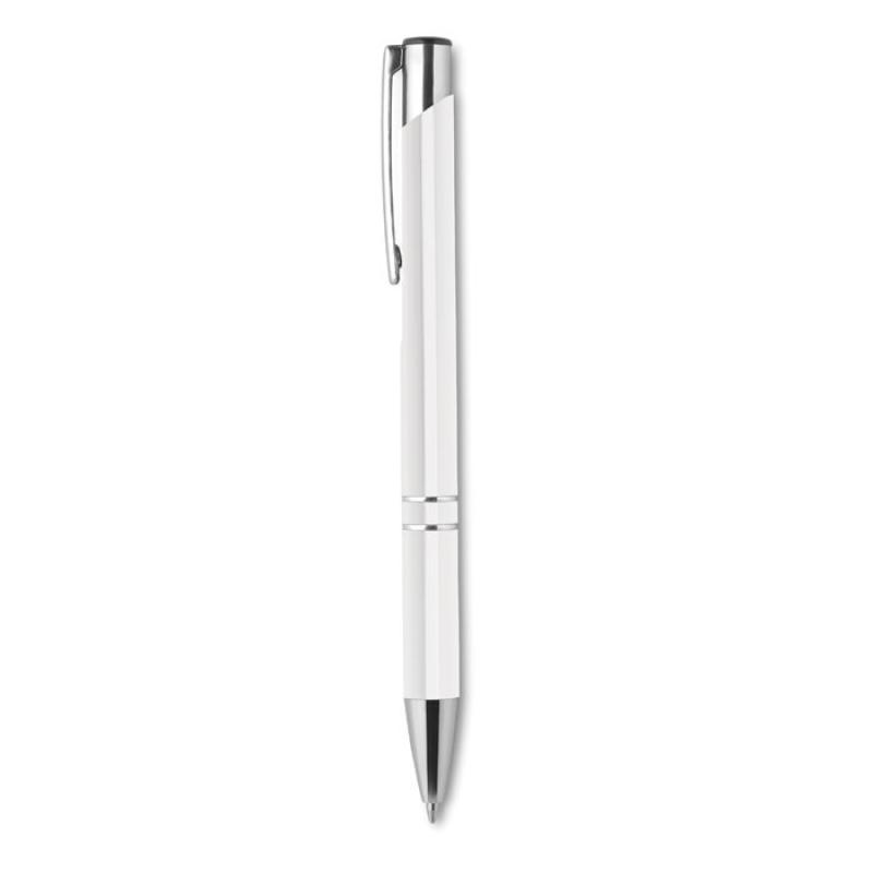 Bolígrafo con pulsador en acabado anodizado. Tinta negra.