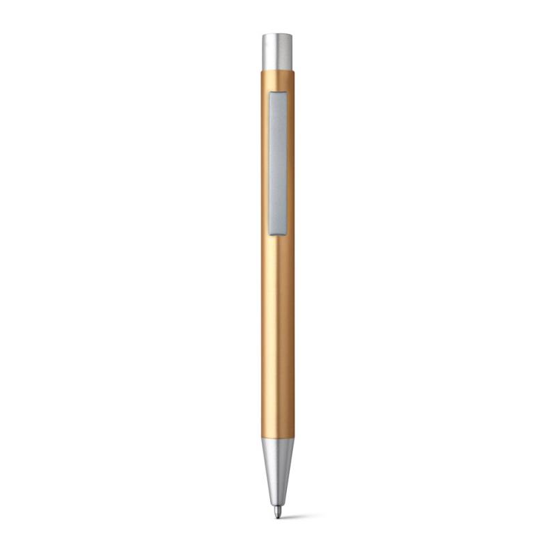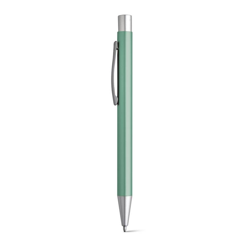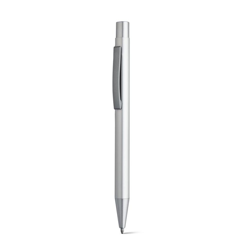 Bolígrafo fabricado en aluminio con acabado mate, mecanismo de clip y escritura azulRecipiente :