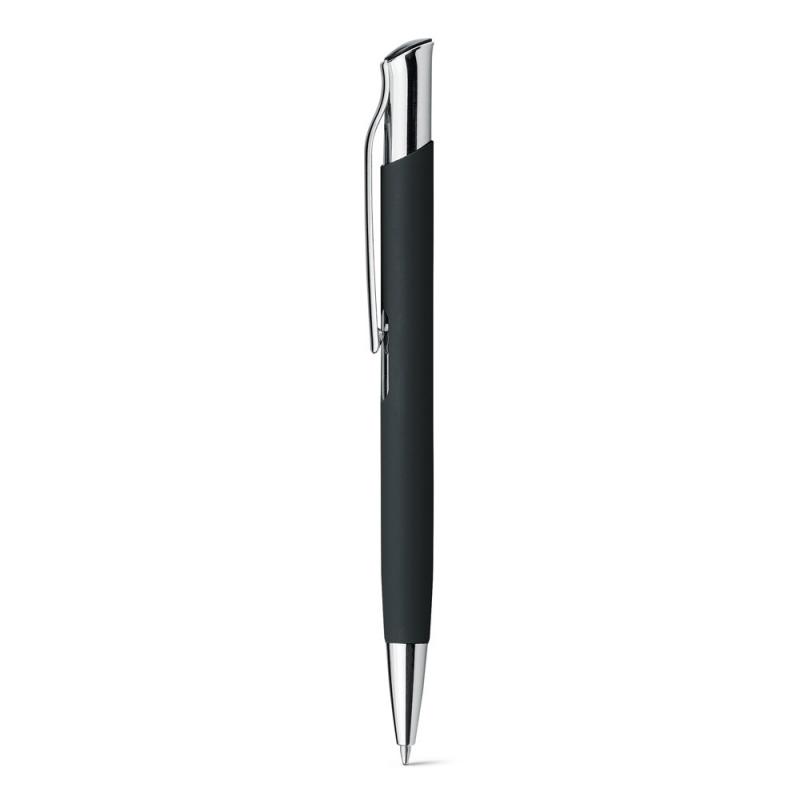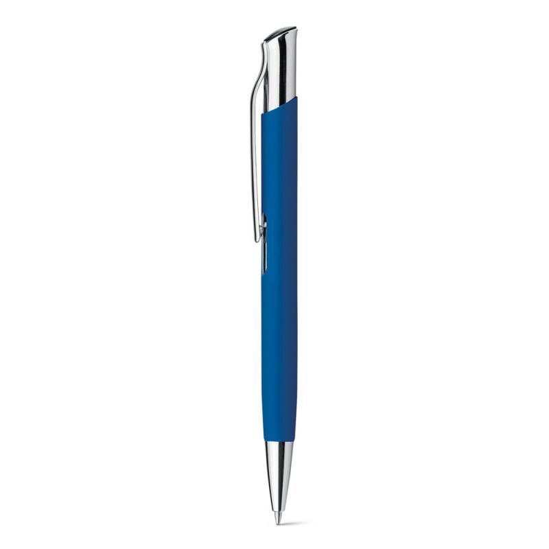 Bolígrafo de aluminio con acabado de goma y tacto suave. Escritura azulRecipiente :