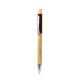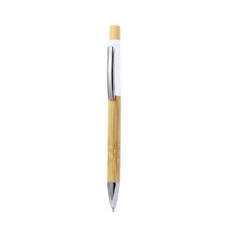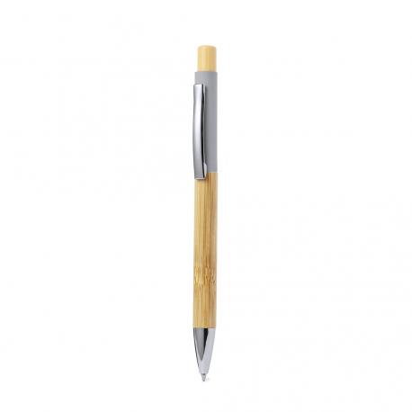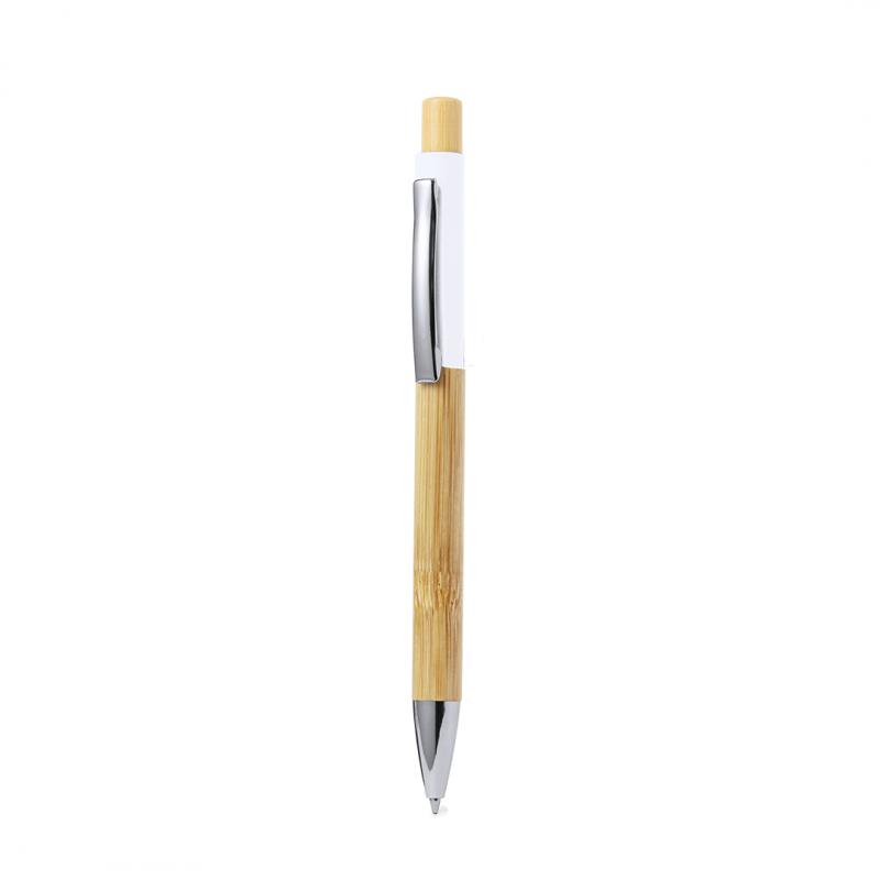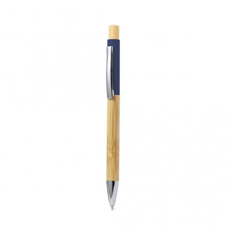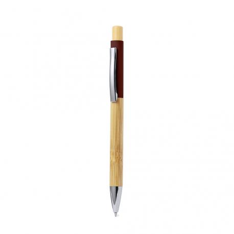 Elegante bolígrafo fabricado en bambú. Cuerpo en resistente aluminio de acabado goma y empuñadura en bambú, con la caña en una amplia gama de distintivos colores. Clip metálico, con mecanismo pulsador y en tinta azul. Presentado en bolsa individual reciclada.Materiales como el bambú fomentan la utilización de materias primas naturales, reduciendo las emisiones contaminantes. Proviene de una planta de gran resistencia y versatilidad, con crecimiento y regeneración rápidos, siendo una excelente alternativa al uso de madera tradicional.