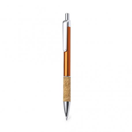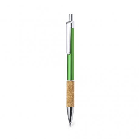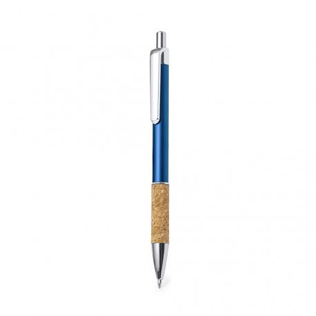 Elegante bolígrafo de corcho y aluminio con mecanismo pulsador. Cuerpo en resistente aluminio de acabado brillante y empuñadura en corcho, con la caña en una amplia gama de distintivos colores. Clip metálico, y en tinta azul. Presentado en bolsa individual reciclada.Elaborado con elementos vegetales para así fomentar la utilización de materias primas naturales y reducir las emisiones contaminantes.