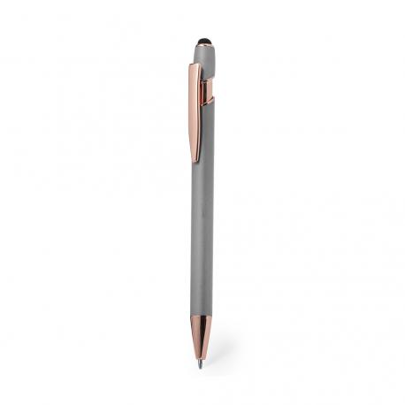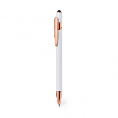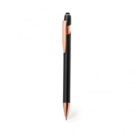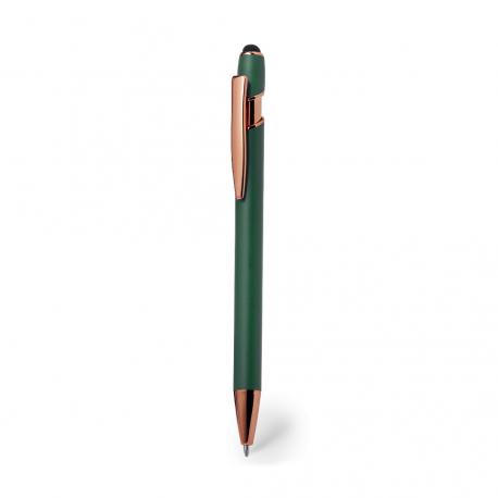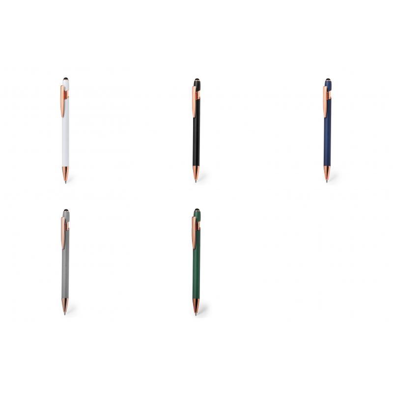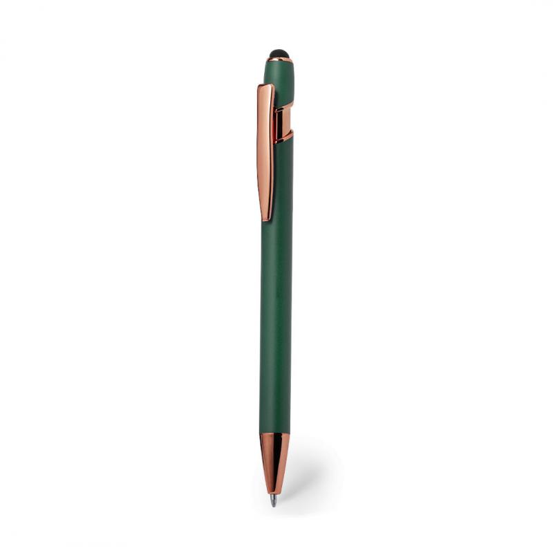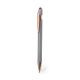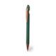 Excelente bolígrafo puntero de aluminio con mecanismo pulsador. Cuerpo en resistente aluminio de acabado mate con elementos decorativos de elegante acabado color cobre, con la caña en una amplia gama de distintivos colores. Clip metálico, con pulsador retráctil y puntero negro en la parte superior. En tinta azul. Presentado en una bolsa individual reciclada.