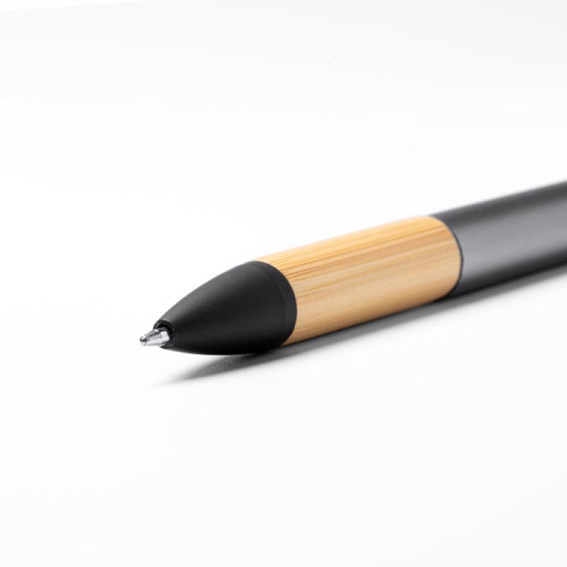 El bolígrafo de 3 tintas con pulsador retráctil es una herramienta versátil y conveniente para todas tus necesidades de escritura. Con su mecanismo retráctil, puedes alternar fácilmente entre las tres tintas disponibles: azul, negra y roja. Esto te permite resaltar, subrayar y escribir en diferentes colores sin la necesidad de llevar varios bolígrafos.El cuerpo del bolígrafo está hecho de ABS, un material resistente y duradero, mientras que la empuñadura está hecha de bambú, lo que le brinda un aspecto natural y elegante. La empuñadura de bambú también proporciona una sensación de comodidad al escribir durante largos periodos de tiempo.Además de su funcionalidad de escritura, el bolígrafo cuenta con un puntero táctil en el extremo opuesto. El puntero táctil te permite interactuar de manera precisa con dispositivos de pantalla táctil, como teléfonos inteligentes o tablets, evitando huellas dactilares no deseadas en la pantalla.Con este bolígrafo de 3 tintas, tendrás todas las opciones de color que necesitas en un solo instrumento, junto con la comodidad de un pulsador retráctil y la funcionalidad adicional del puntero táctil. Es perfecto para el trabajo, la escuela o cualquier otra ocasión en la que necesites una herramienta de escritura versátil y práctica.