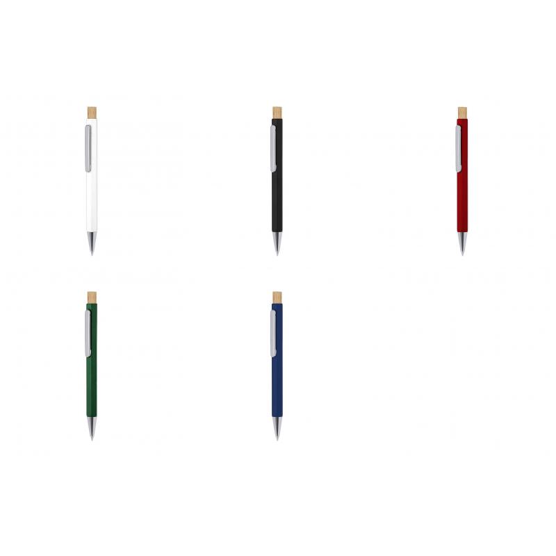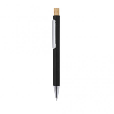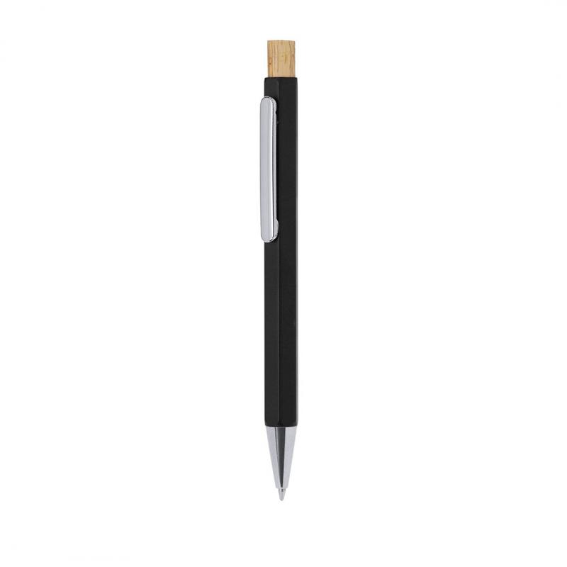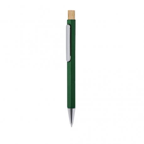 Elegante bolígrafo fabricado en Aluminio Reciclado. Cuerpo en distinguida forma hexagonal, con clip y punta cromadas. De mecanismo pulsador fabricado en bambú y de tinta azul. Con distinguido logo de Aluminio Reciclado marcado en la caña.El Aluminio Reciclado es un material con posibilidades de reciclaje casi infinitas, sin perder sus propiedades originales y consumiendo menos energía en este proceso.Certificación GRS (Global Recycled Standard / Estándar de Reciclaje Global), que garantiza el origen reciclado del material usado para fabricar el producto.Materiales como el bambú fomentan la utilización de materias primas naturales, reduciendo las emisiones contaminantes. Proviene de una planta de gran resistencia y versatilidad, con crecimiento y regeneración rápidos, siendo una excelente alternativa al uso de madera tradicional.