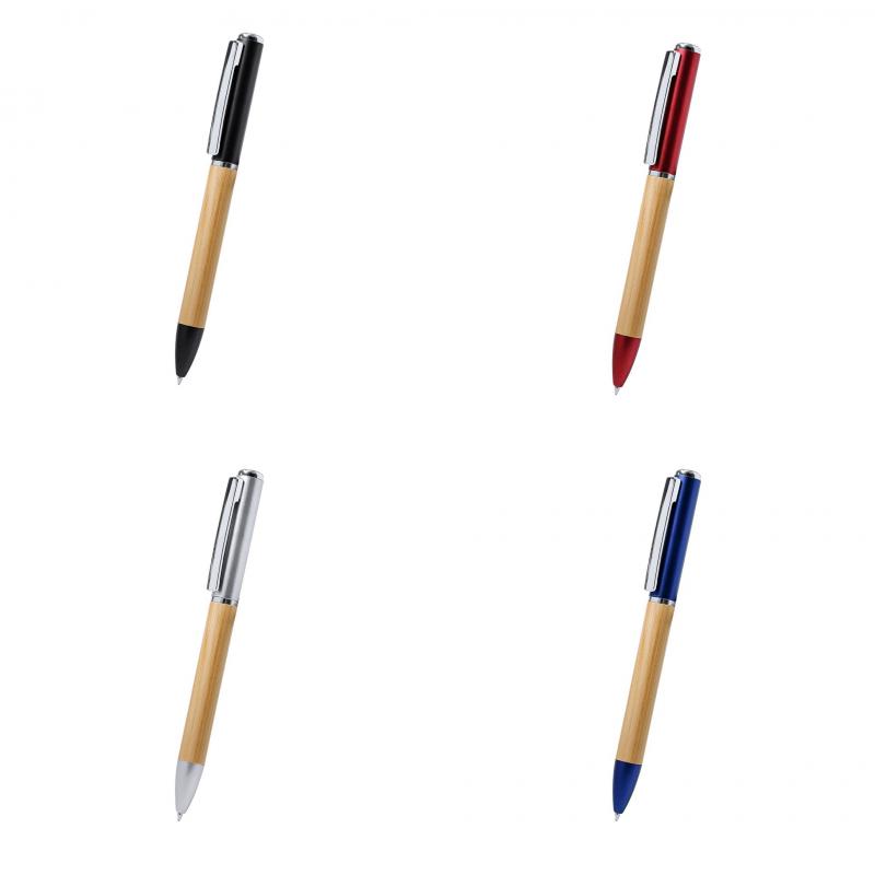 Bolígrafo con linterna led integrada fabricada en bambú. De mecanismo giratorio para bolígrafo y pulsador lateral de on/off, de diseño minimalista de original combinación y de clip metálico. En tinta azul y con pilas de botón incluidas.