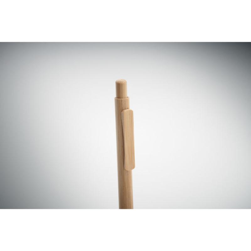 Bolígrafo de pulsador con cuerpo, punta, clip y cuerpo de bambú. Tinta azul.Recipiente :