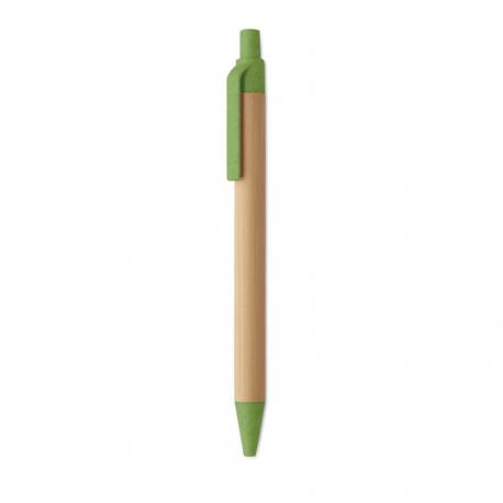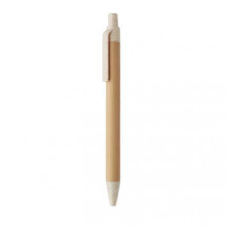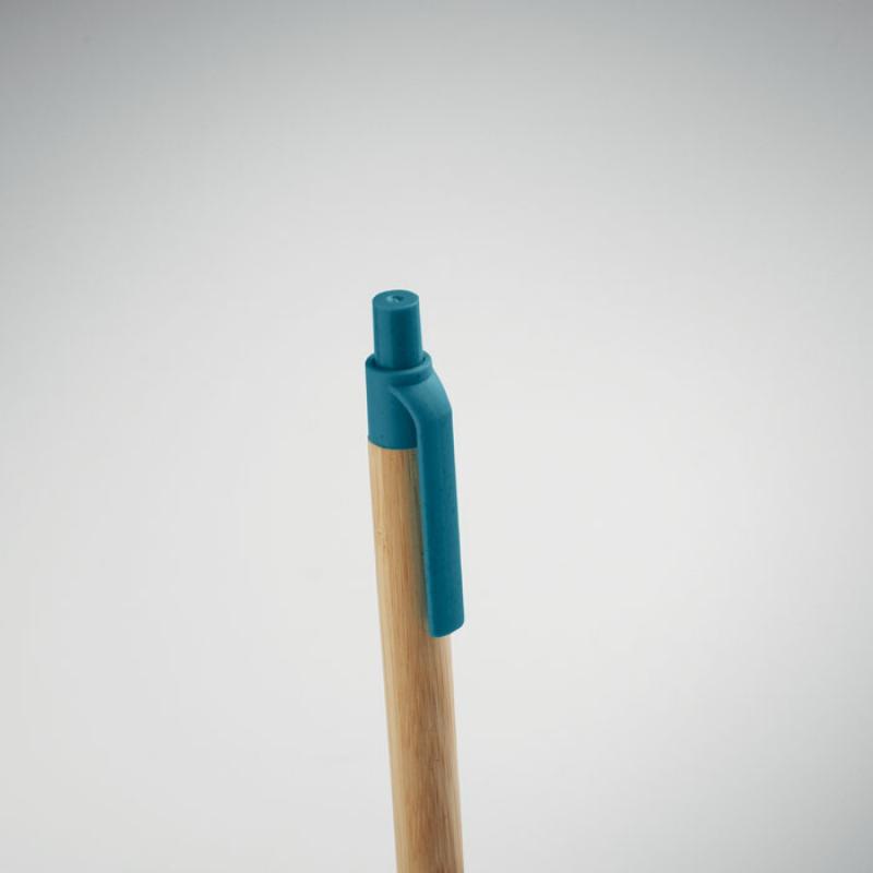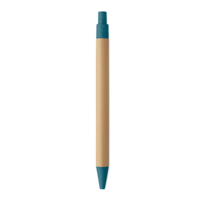 Bolígrafo con pulsador, cuerpo de bambú y accesorios de paja de trigo (50%) y plástico ABS (50%). Tinta azul.Recipiente :