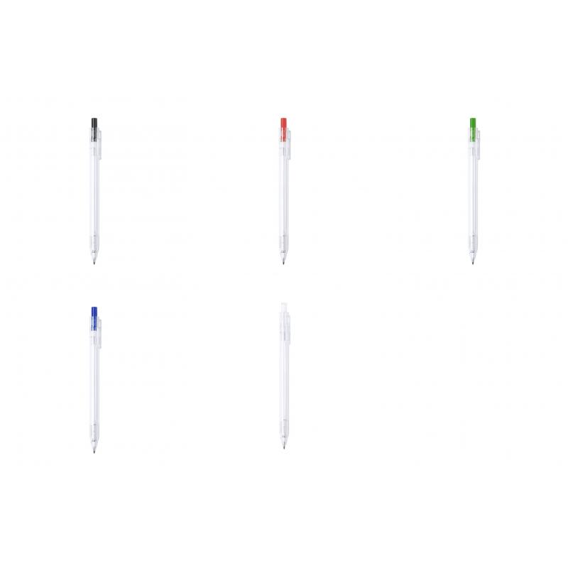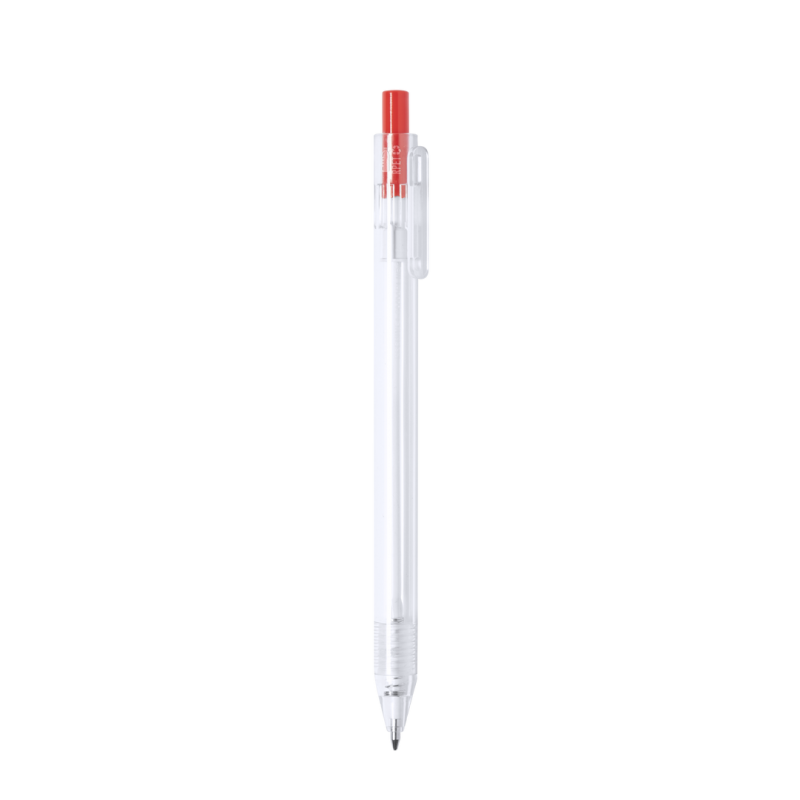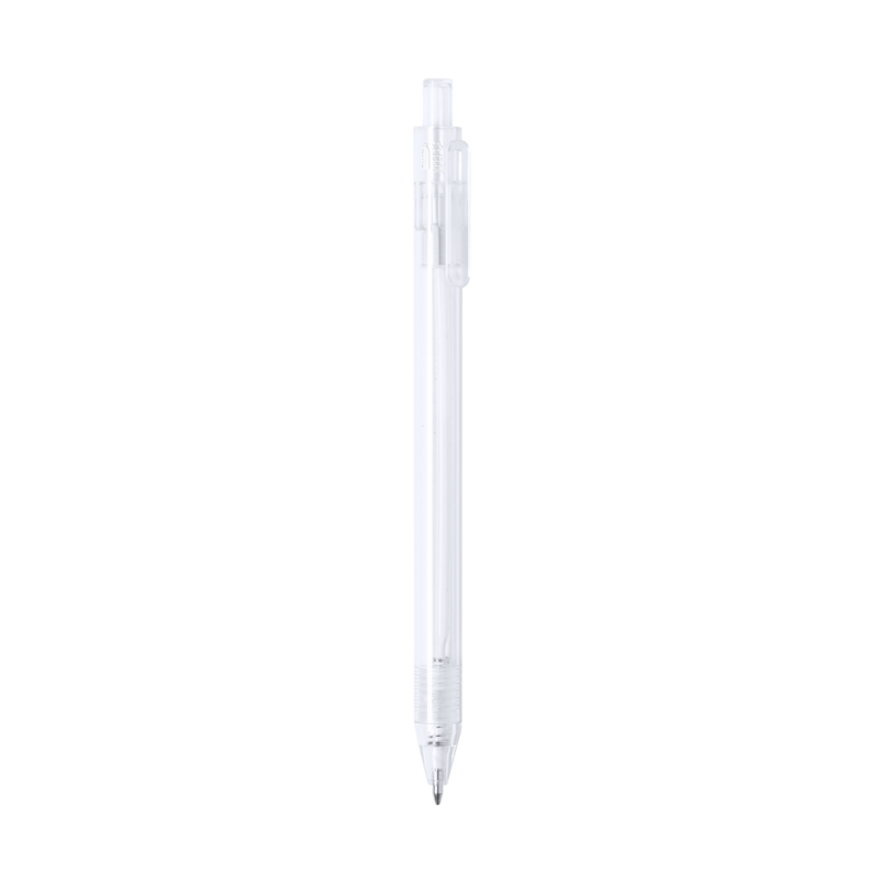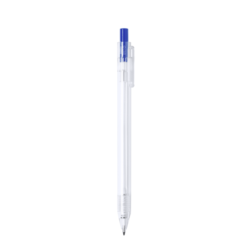 Bolígrafo de línea nature en material RPET, elaborado a partir de plástico reciclado para así fomentar la reutilización de residuos plásticos y ayudar a la sostenibilidad del planeta. De acabado translúcido y con pulsador disponible en variada gama de colores, con distintivo RPET en el cuerpo del bolígrafo. Especialmente diseñado para marcaje en tampografía, de mecanismo pulsador y con tinta azul.