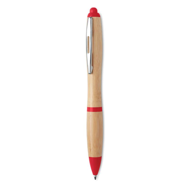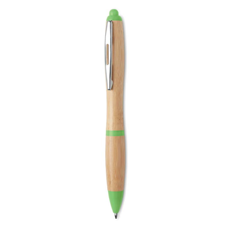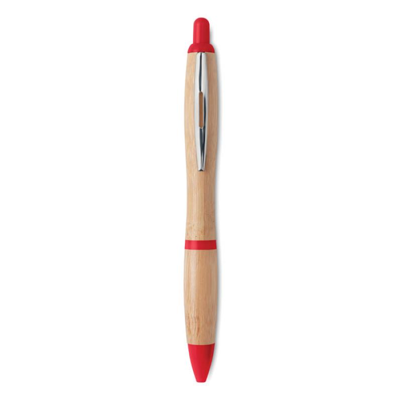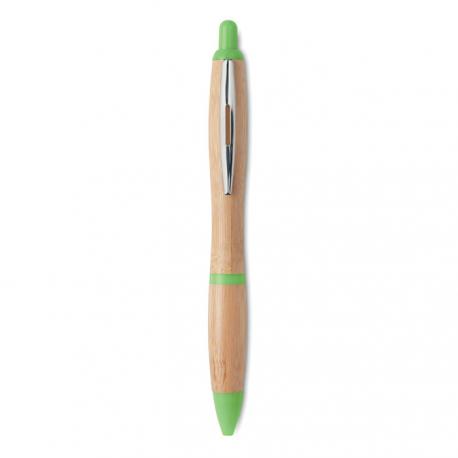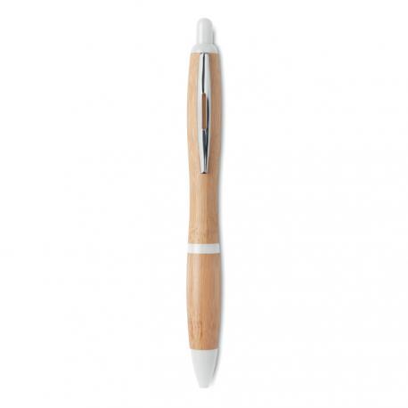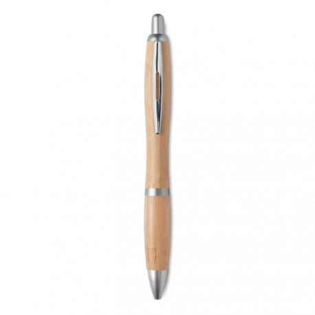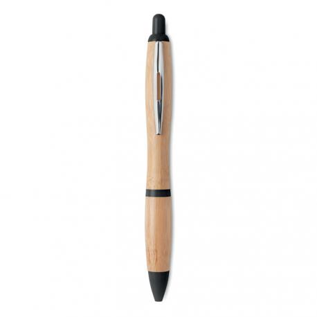 Bolígrafo con pulsador con cuerpo de bambú y detalles en ABS. Tinta azul.