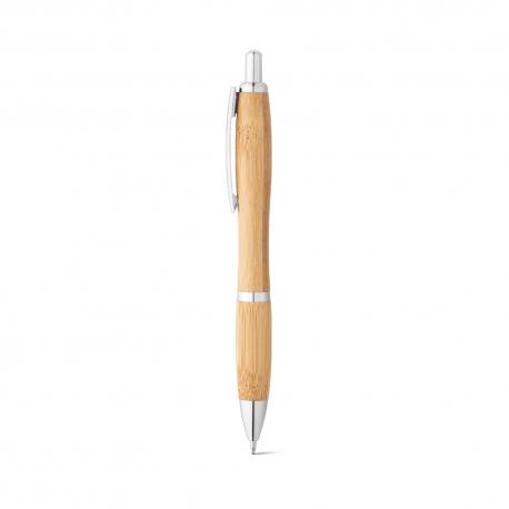 Bolígrafo de bambú con clip, detalles metálicos y tinta negraRecipiente :